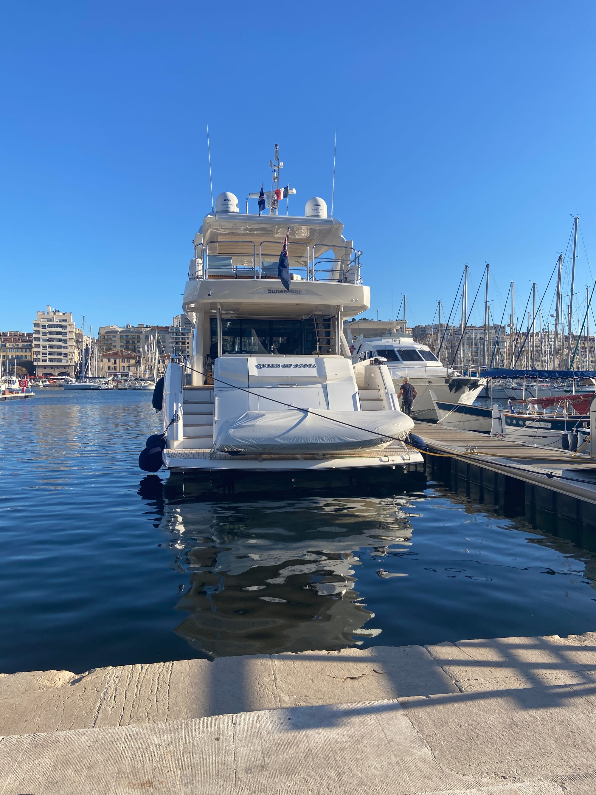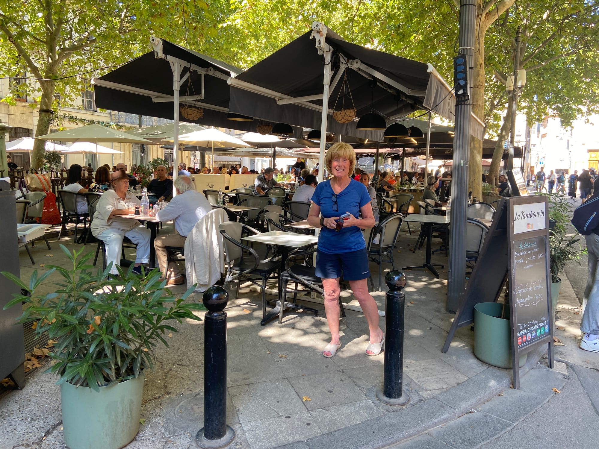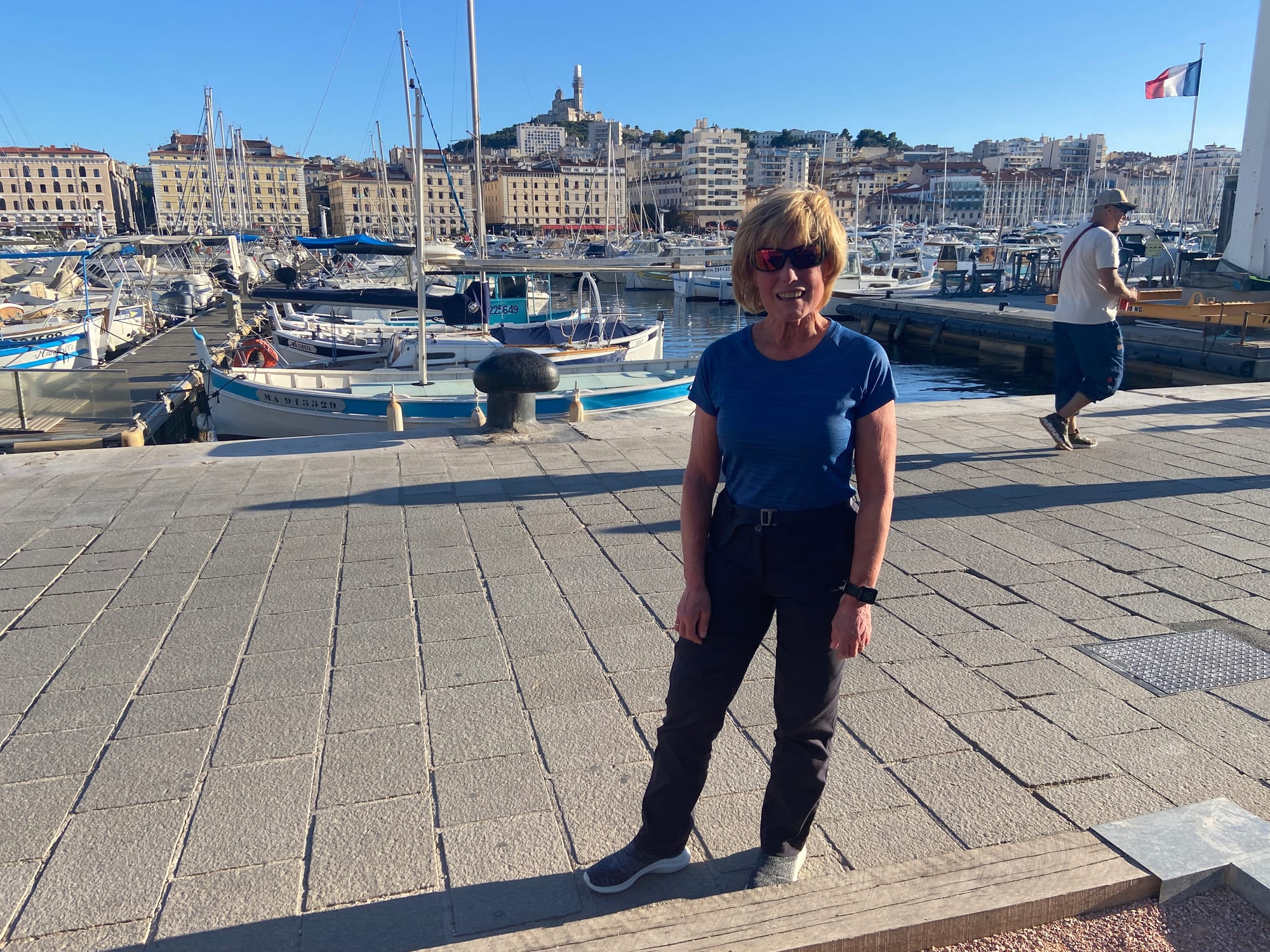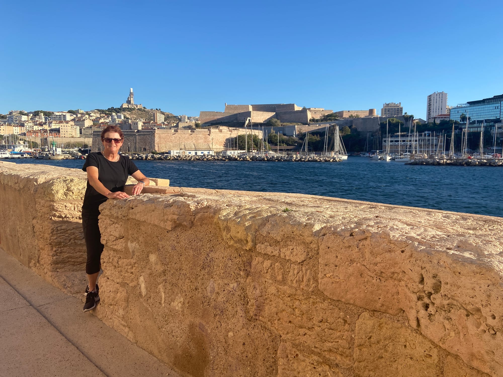Marseille turned out to be a real surprise — such a beautiful place. We strolled down the tree-lined boulevards to the Old Port, where the harbour was crammed with boats of every size and shape. It’s a real tourist hub, so it didn’t take us long to find a lovely restaurant for a very late lunch (or very early dinner!). We couldn’t have picked better: the food was excellent, the waitress was warm and welcoming, and the whole place had a relaxed, friendly atmosphere. It was the perfect spot to linger, enjoy the meal, and watch the world go by.