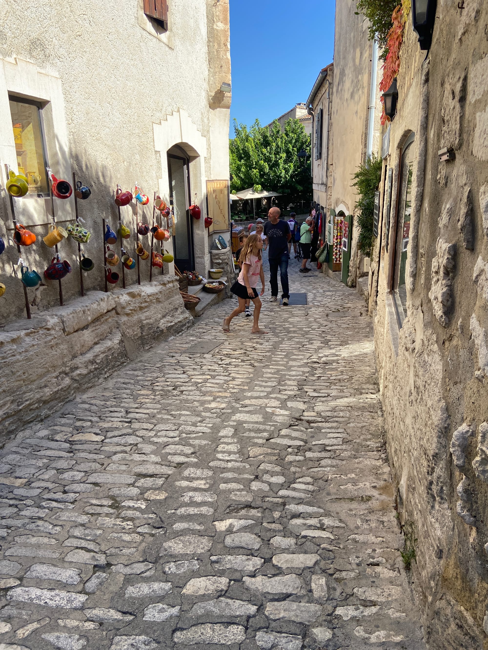 The highlight of the morning was the stunning village of Les Baux-de-Provence. Perched high on a rocky hill, it was buzzing with tourists and offered incredible views in every direction. The climb up was our first real test of the trip — long and steady — but worth every pedal stroke.