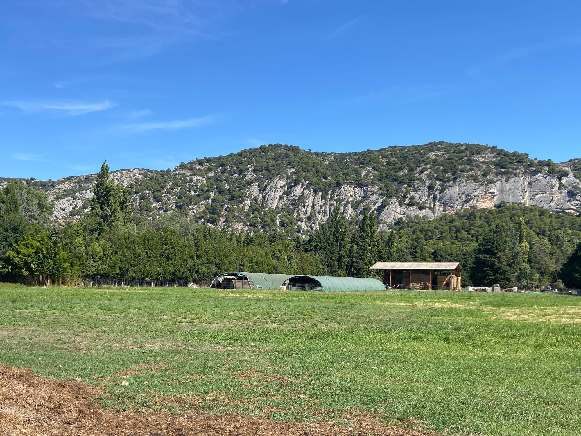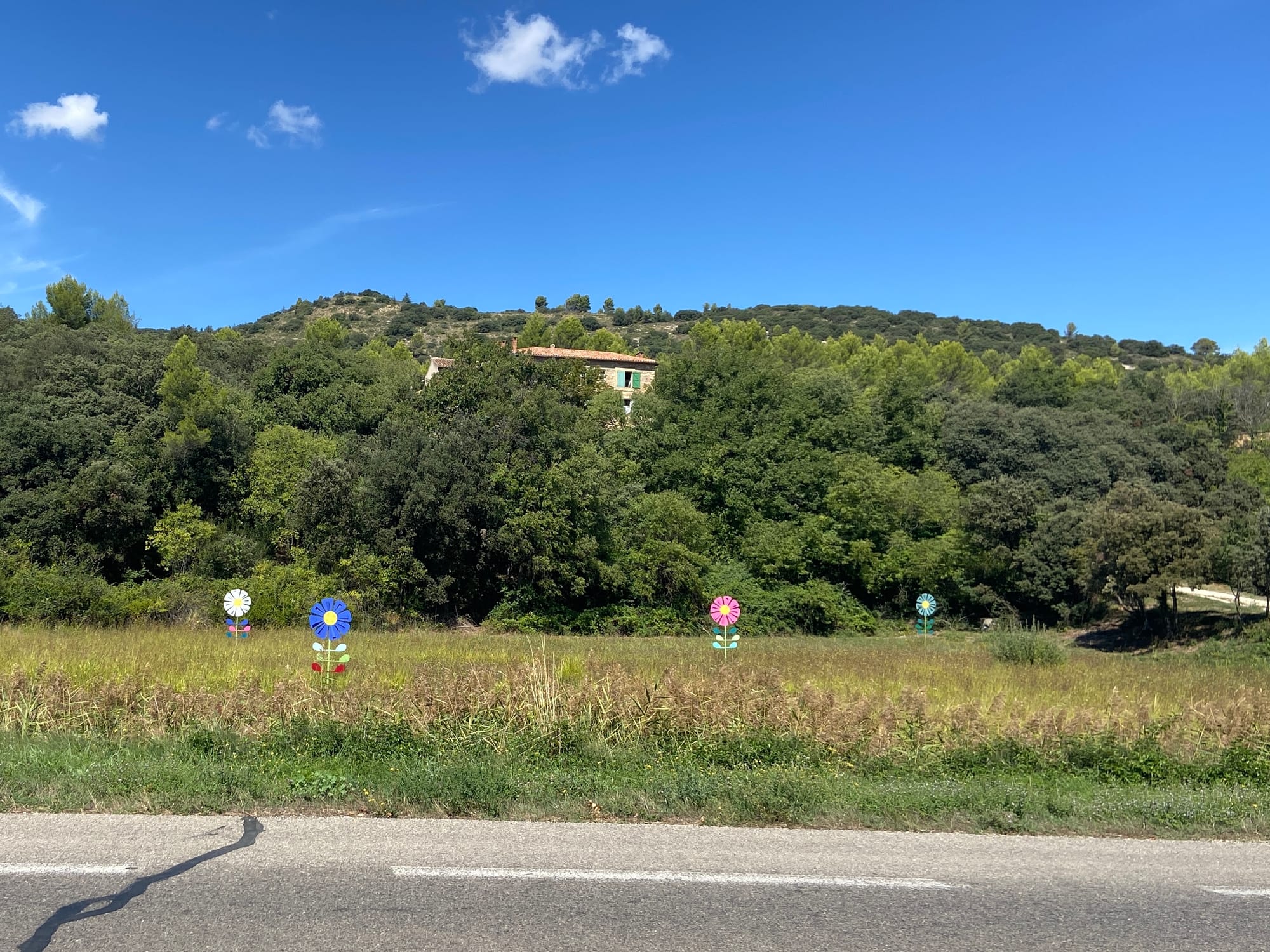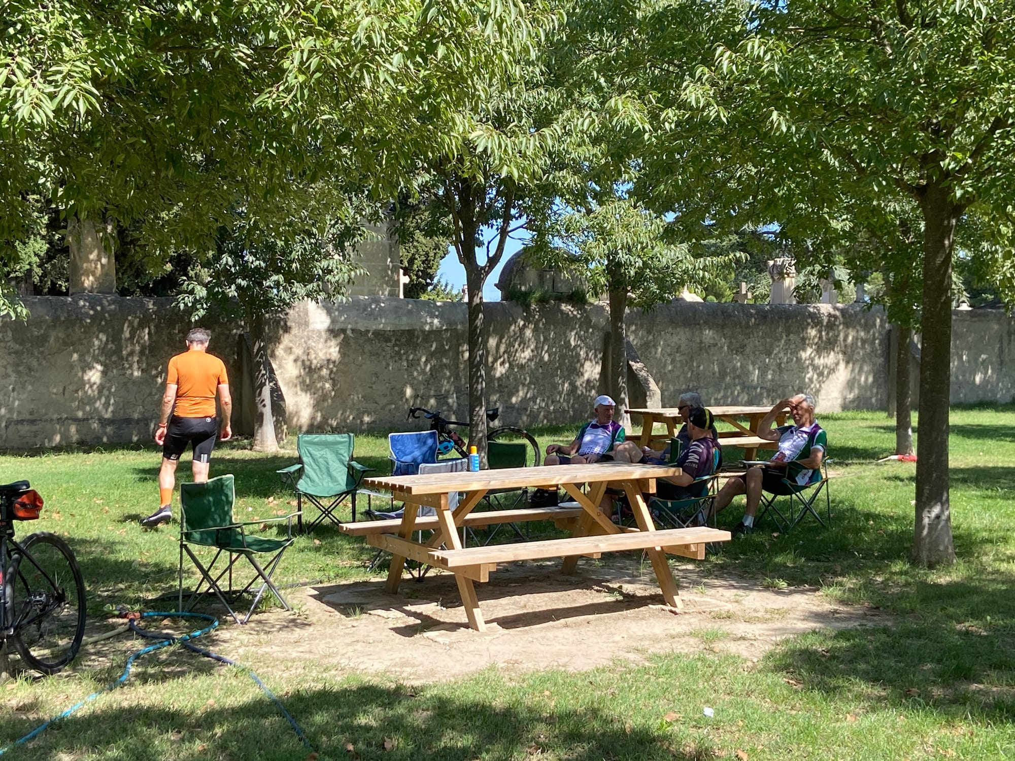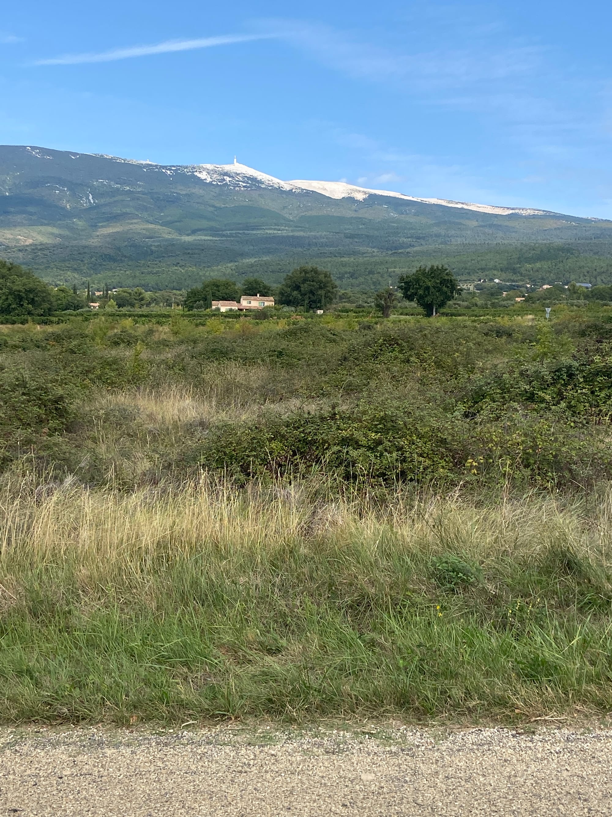 It was a great cycling path out of the city, leading us straight onto quiet roads that followed the river for miles. We stopped for our first brew stop just after passing through Châteauneuf-du-Pape, before continuing through a series of charming little hamlets and villages. The route was perfect — smooth cycle paths, gentle stretches, and clear views of the mountains ahead.