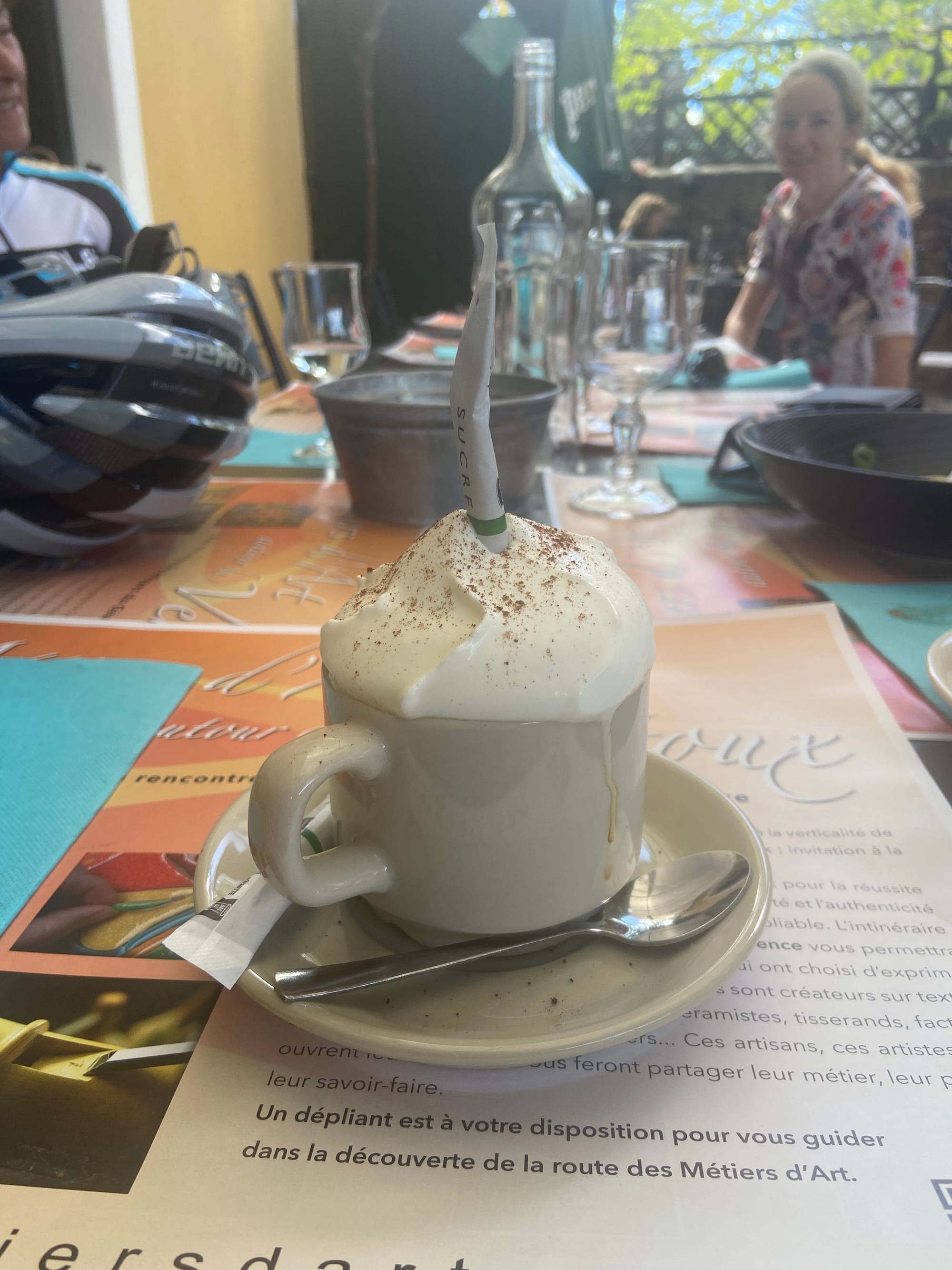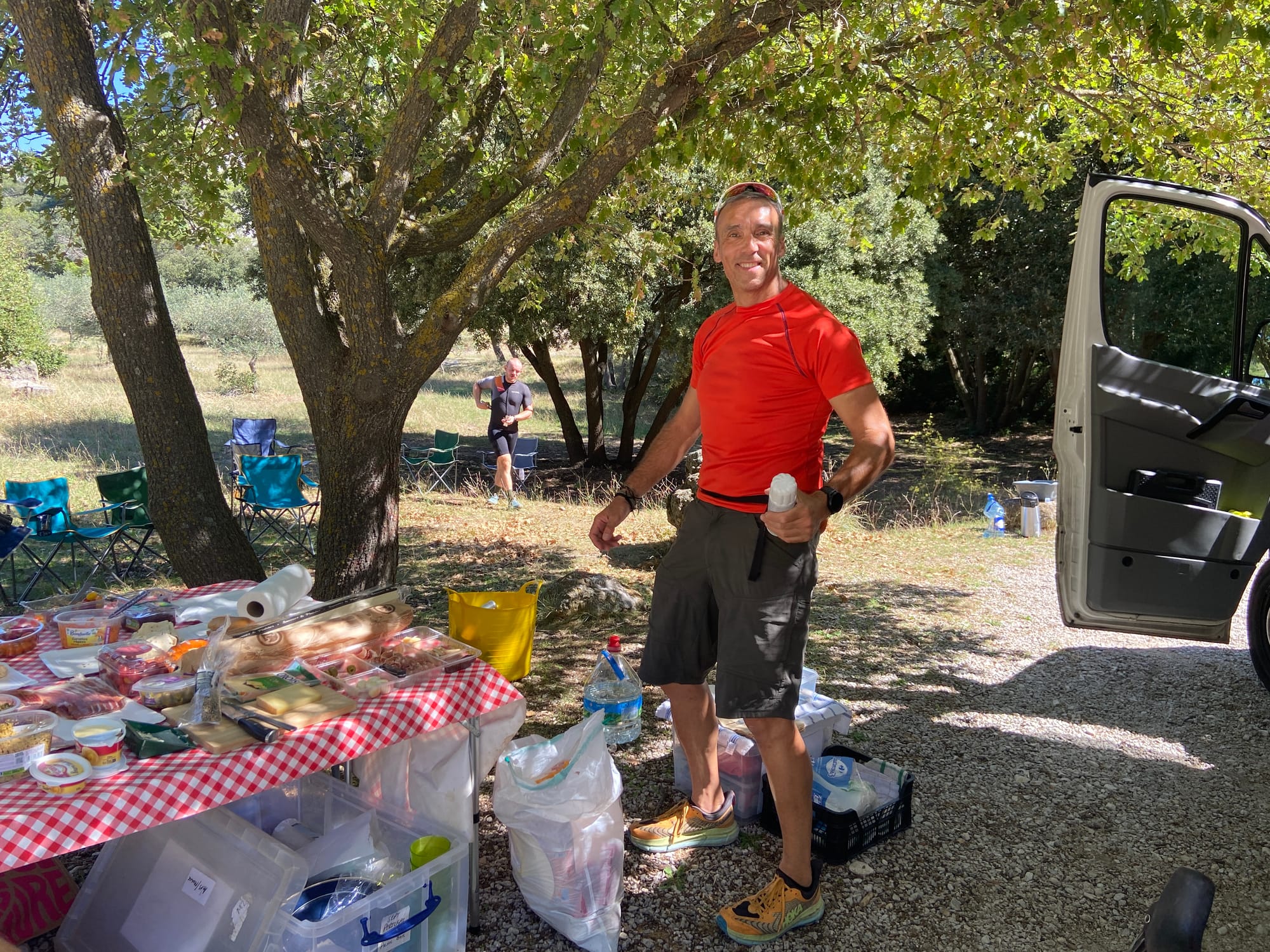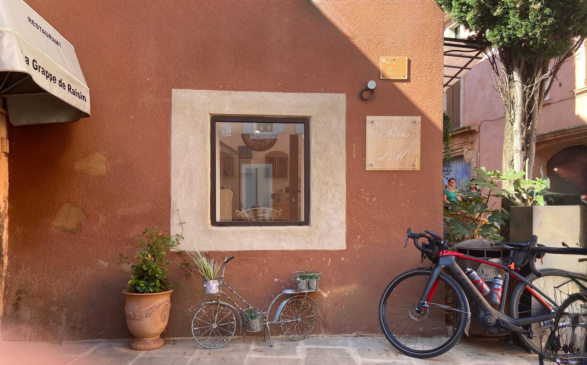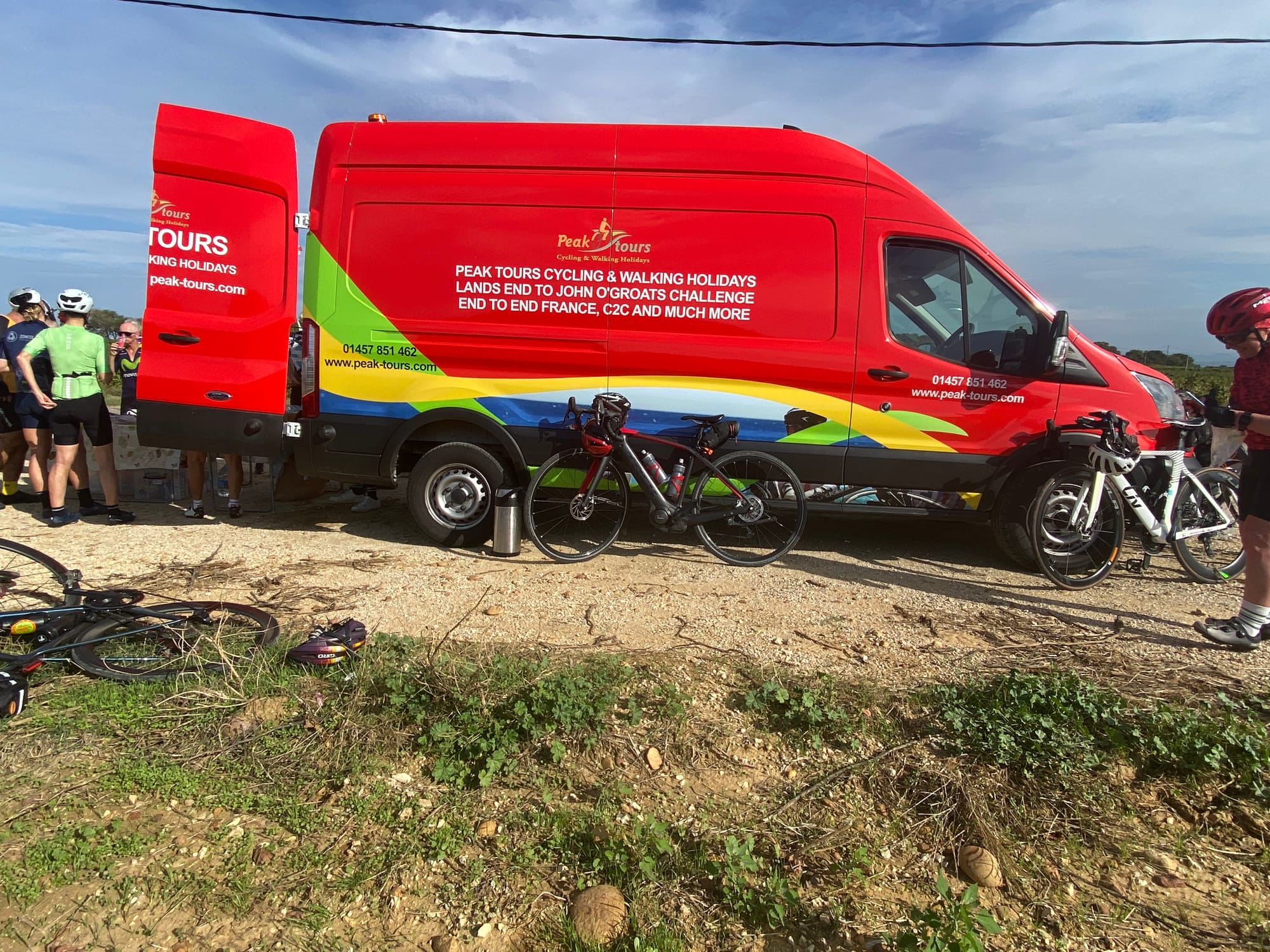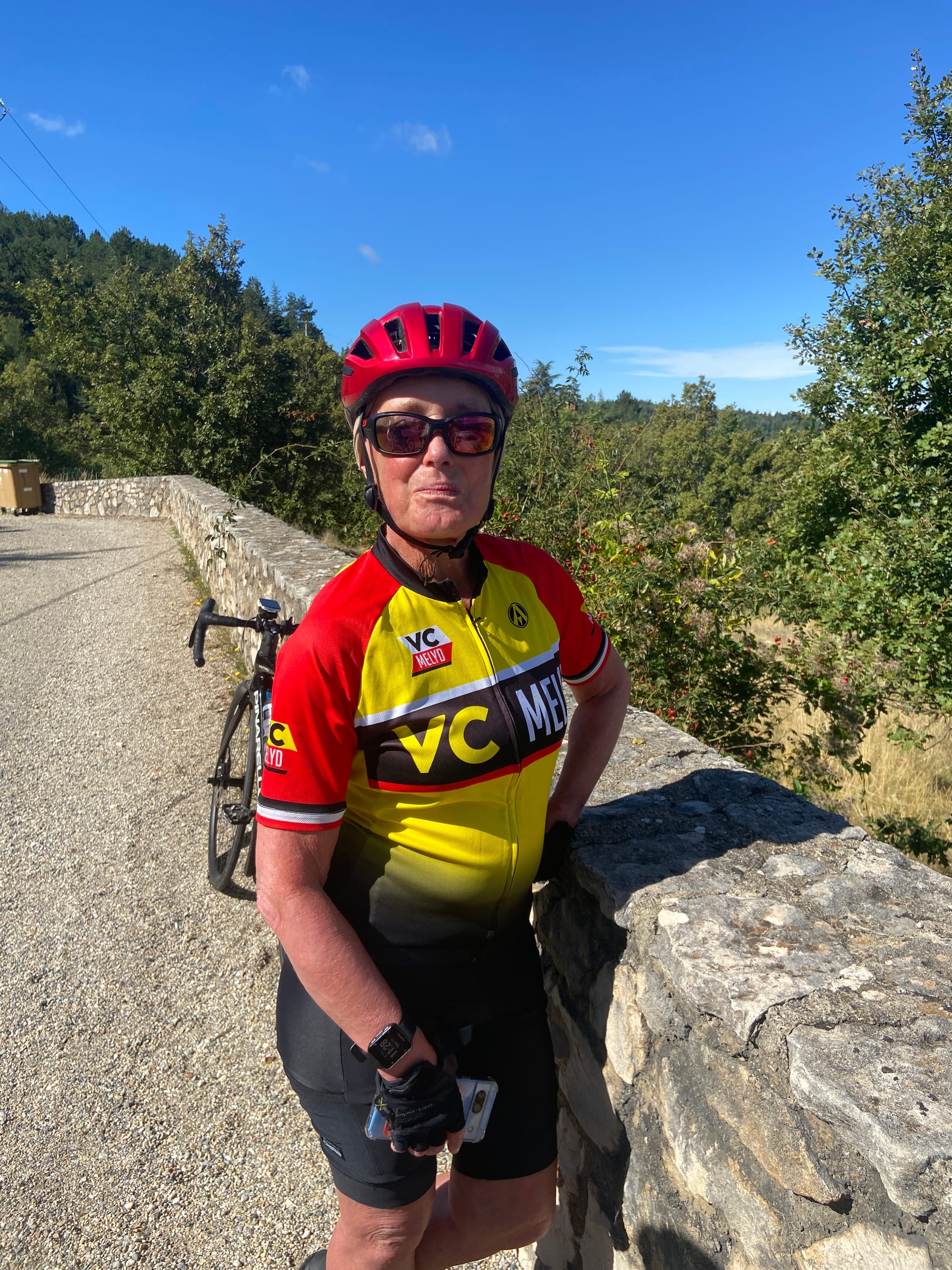 A huge thanks to Tony for arriving with my spare battery and, of course, taking the obligatory photos. The descent followed — thirteen miles of steep roads with plenty of bends — before reaching lunch in Bédoin.