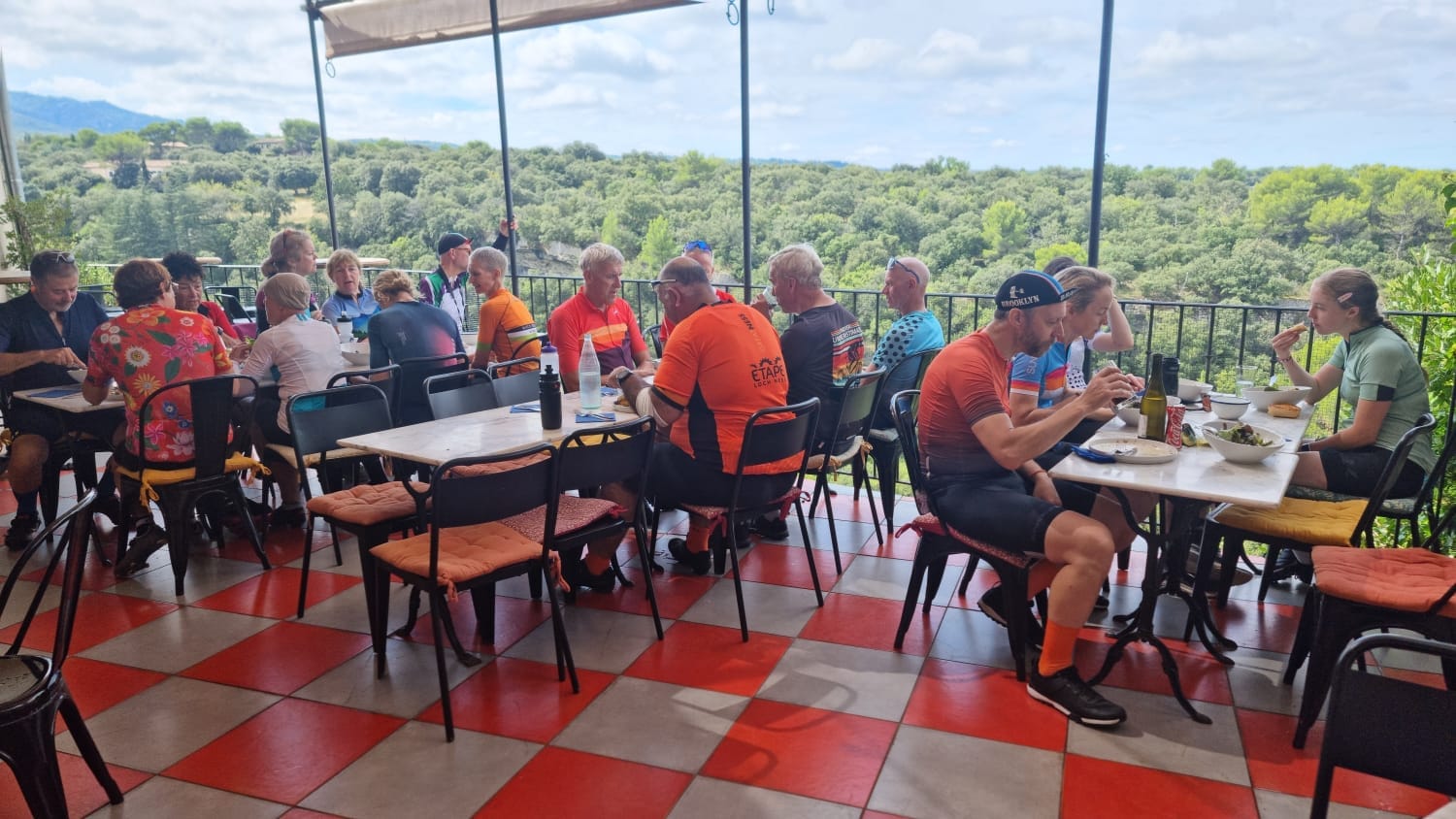 Dinner that evening was at a fantastic rooftop restaurant, peaceful and relaxed, serving delicious food as the sun set over the hills. It had been a truly wonderful day of cycling — challenging at times, but filled with spectacular scenery, good food, and plenty of laughter.