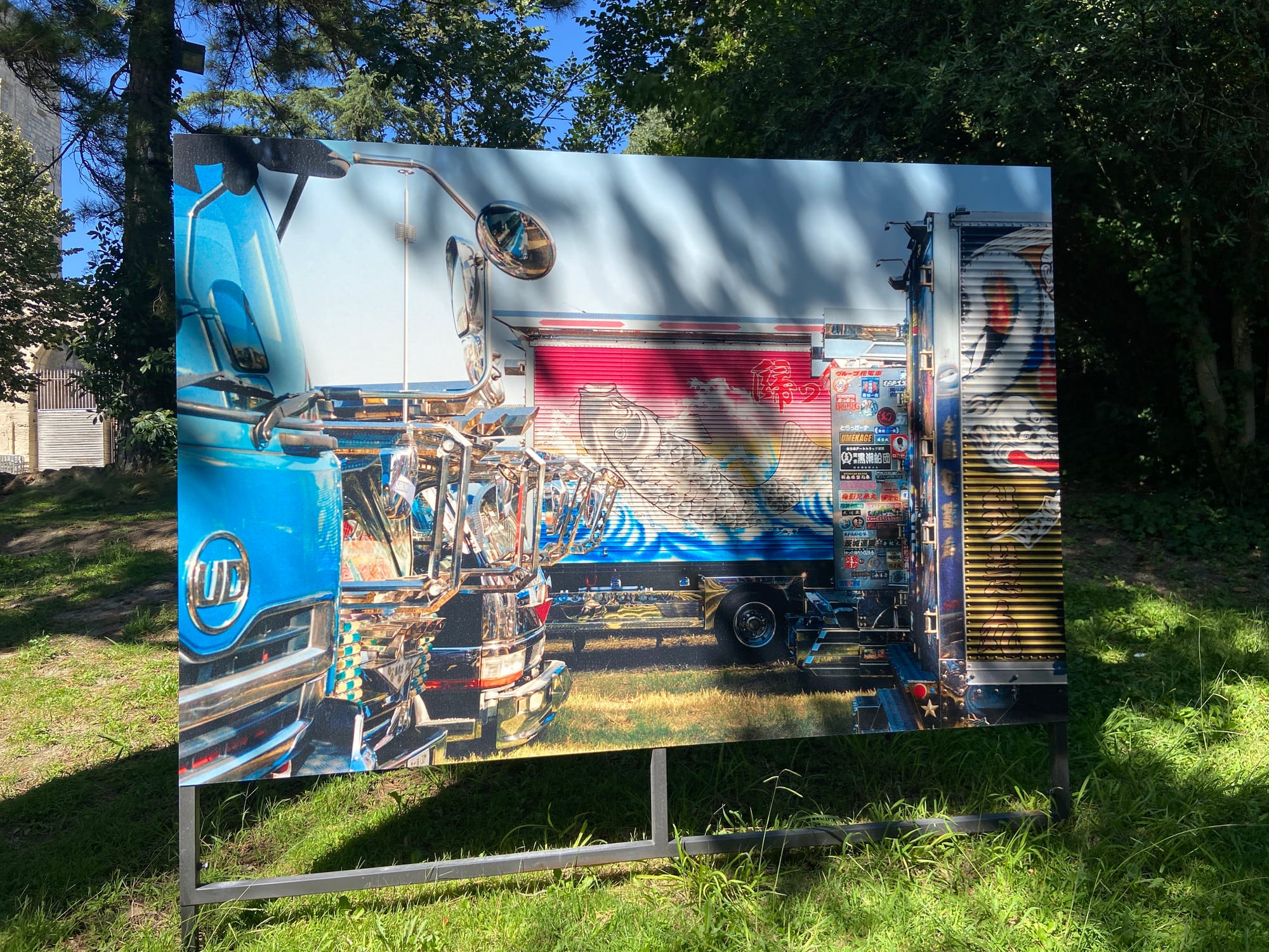 We spent the day exploring Arles on foot, happily soaking up the sights and sounds. One unexpected highlight was stumbling across a small garden hosting a stunning exhibition of Japanese art. The focus was on the dekotora phenomenon — elaborately decorated trucks in Japan. These aren’t just painted vehicles; they’re rolling works of art, covered in chrome, lights, intricate designs, and motifs drawn from folklore and pop culture. The photographs on display were breathtaking — far more striking in person than any picture could capture. It was a real delight to wander among these vivid images in such a peaceful setting