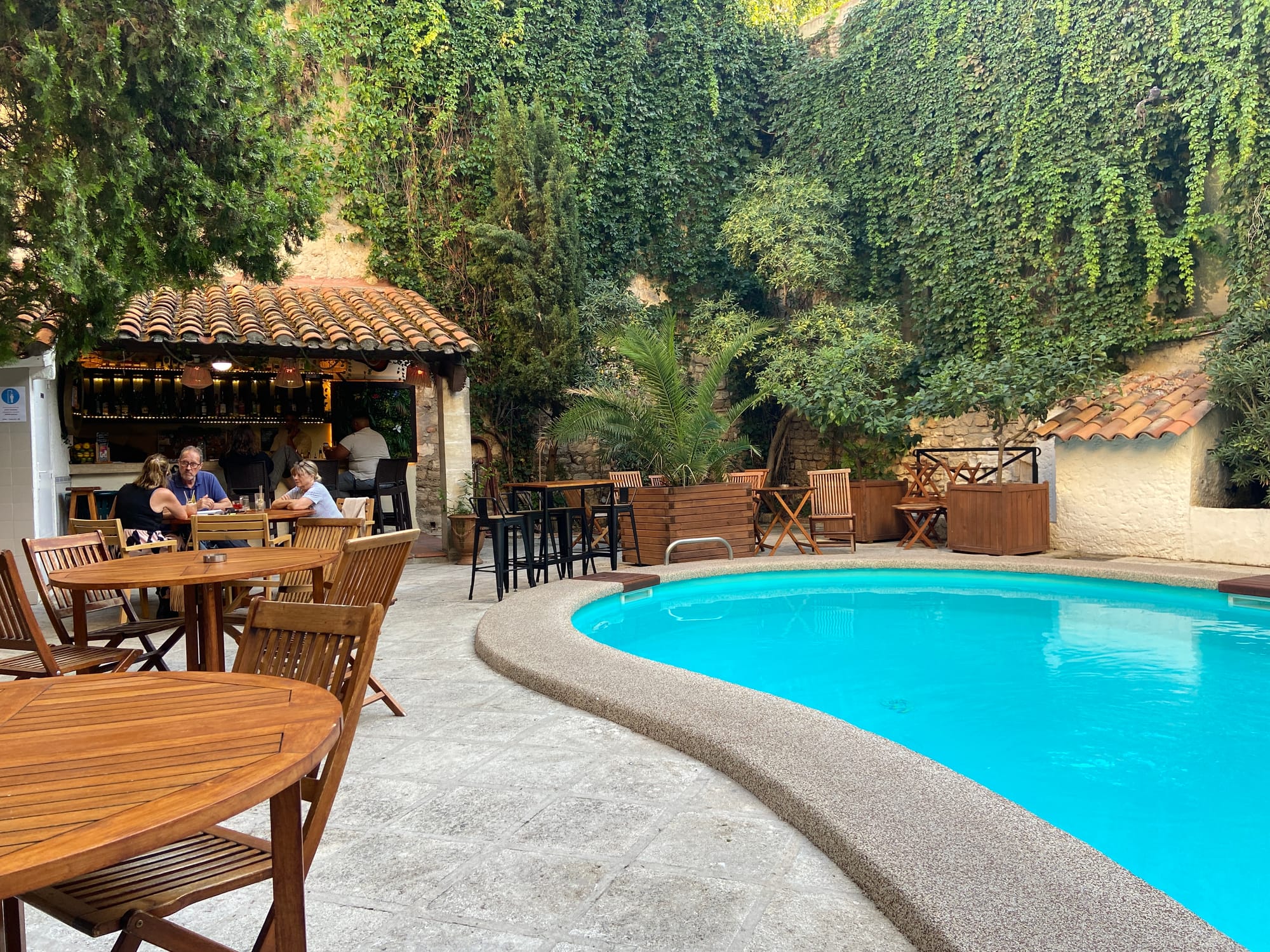As the day went on, the temperature climbed higher and higher. We eventually rolled into Avignon and made our way to Hôtel Cloître Saint-Louis, our base for the next two nights. The hotel, a beautifully restored 16th-century cloister, was peaceful, central, and featured a lovely pool area — just what we needed after a long, hot ride.
