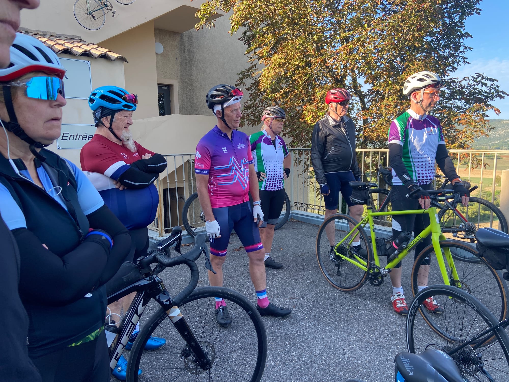 By evening, we arrived in the town of Sault, with Mont Ventoux looming in the distance, waiting for us. The hotel was a cyclist’s dream, featuring two large garages equipped with plenty of stands and plug sockets for e-bikes — perfect for a group like ours.