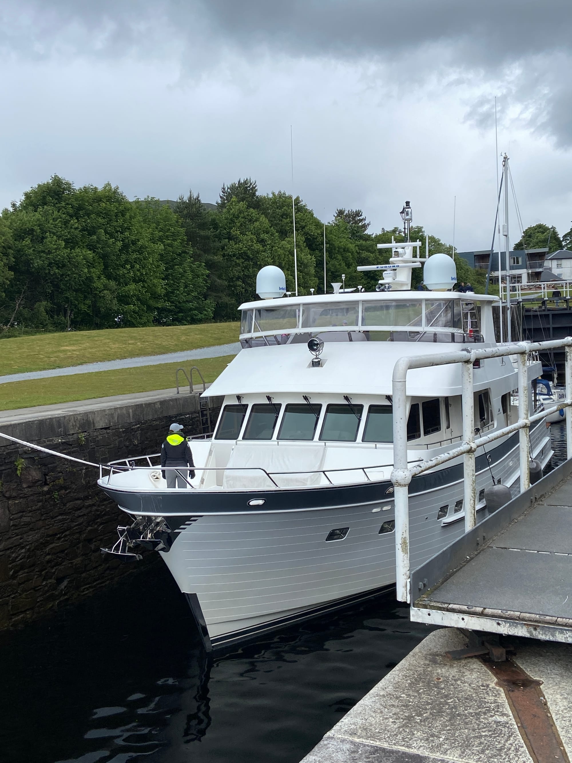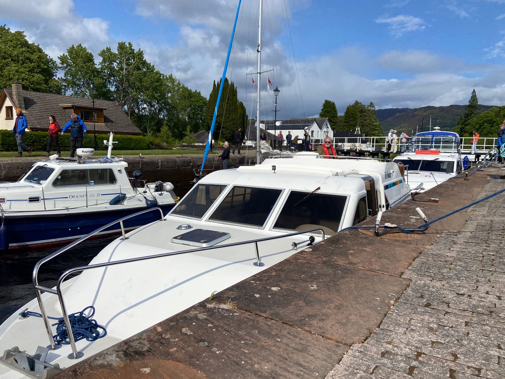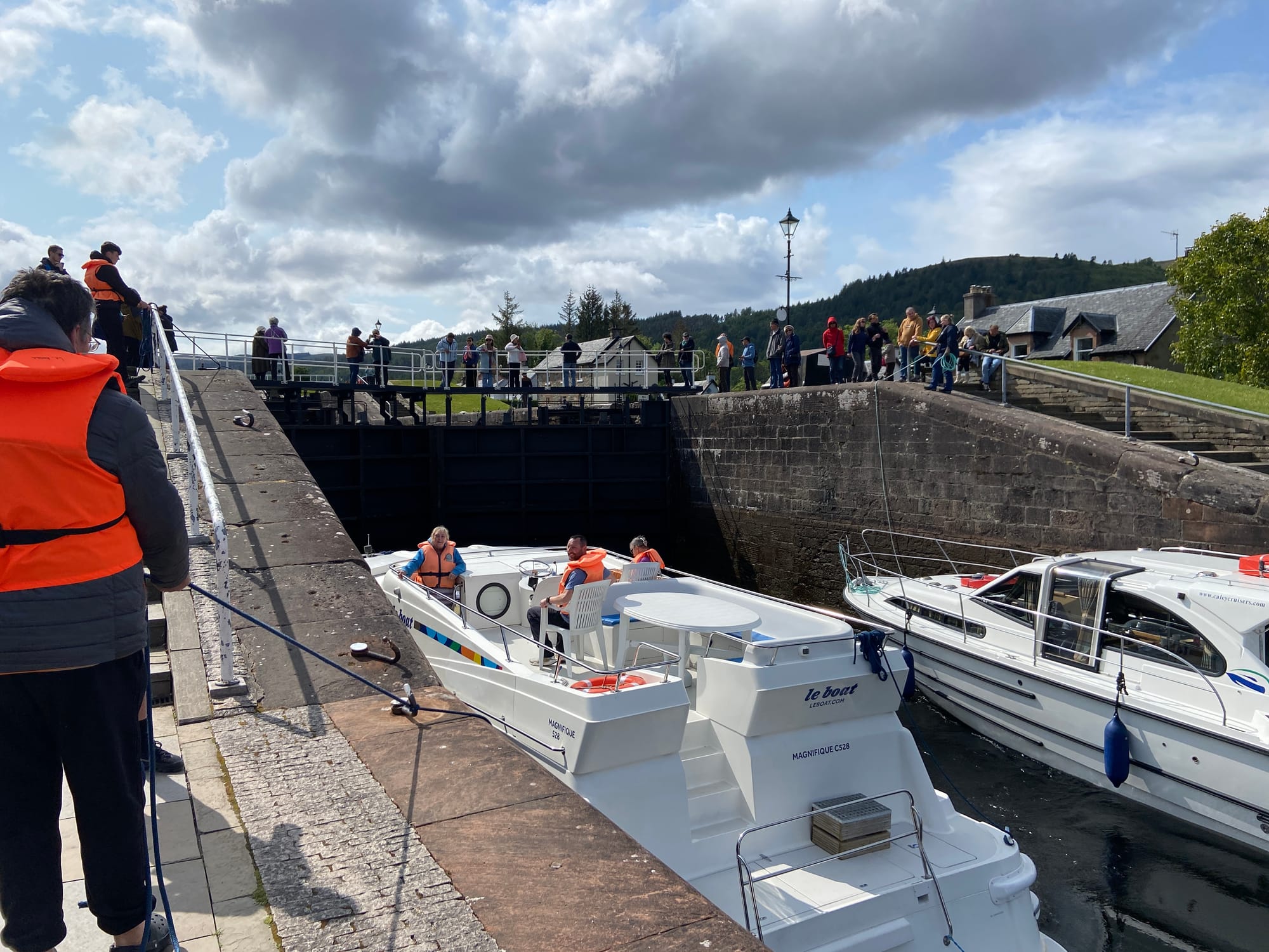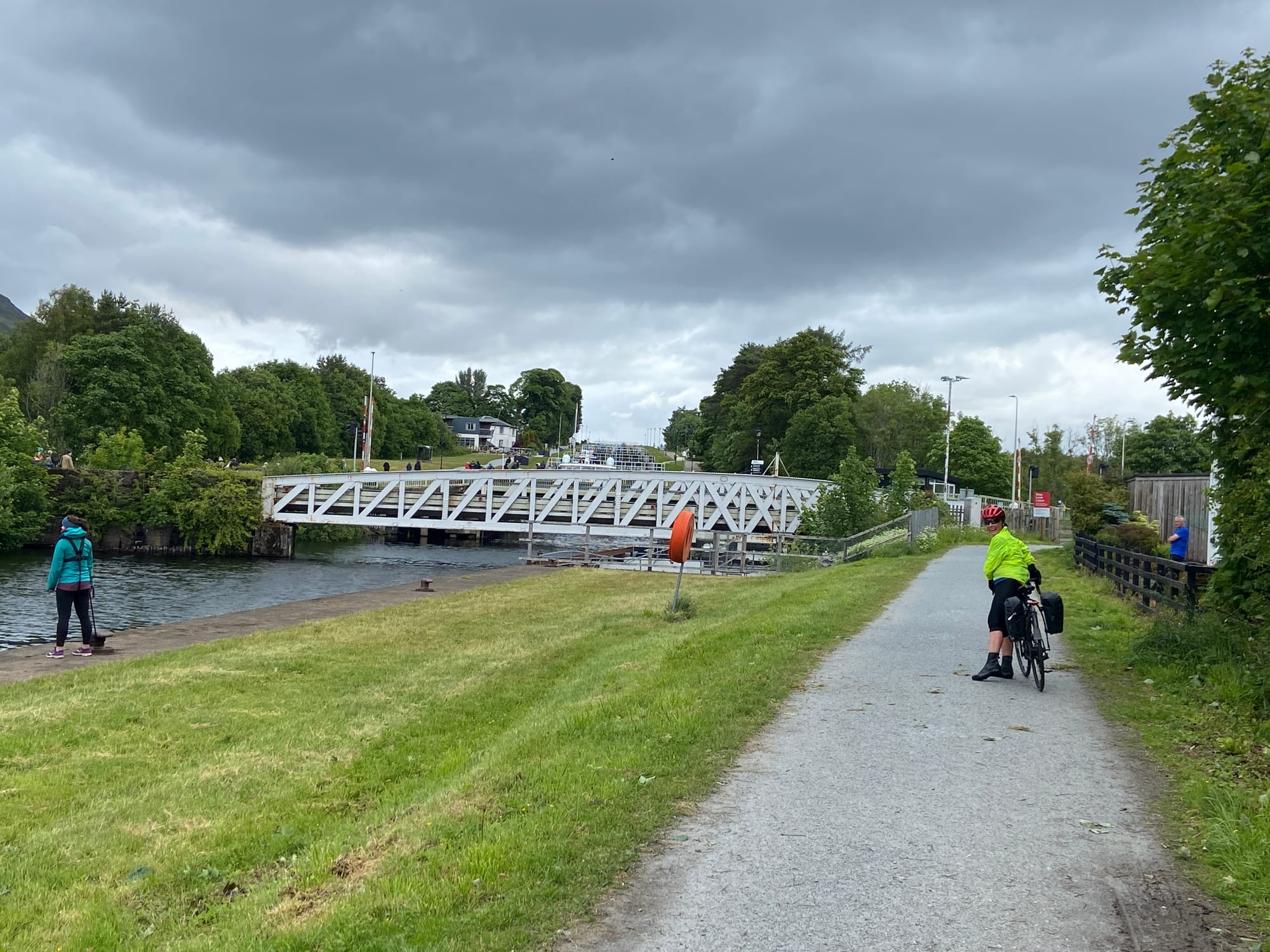 We eventually rolled into Fort Augustus, a lively little village at the southern tip of Loch Ness. The canal runs right through the centre, with cafés, walkers, and cyclists gathered to watch the locks in action. A huge tour boat was making its way through just as we arrived — it barely squeezed through, drawing quite a crowd.