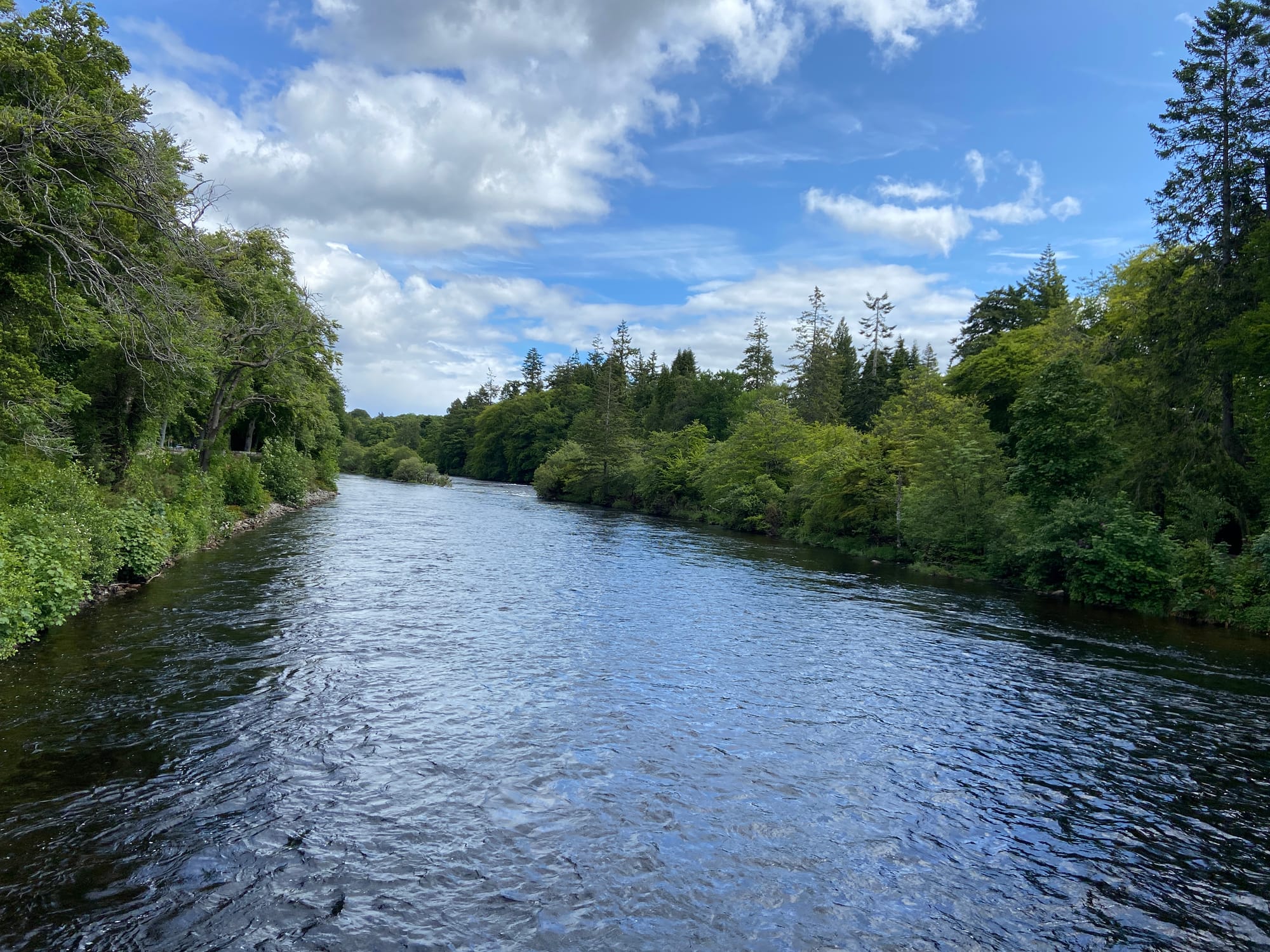 The morning rolled on beautifully under the sun, and before long, we reached Inverness. The ride into the city was lovely — following the river, crossing over to Ness Island, and then over another bridge to the opposite bank. Elegant Victorian houses lined the river, and the area was full of inviting bars and restaurants.