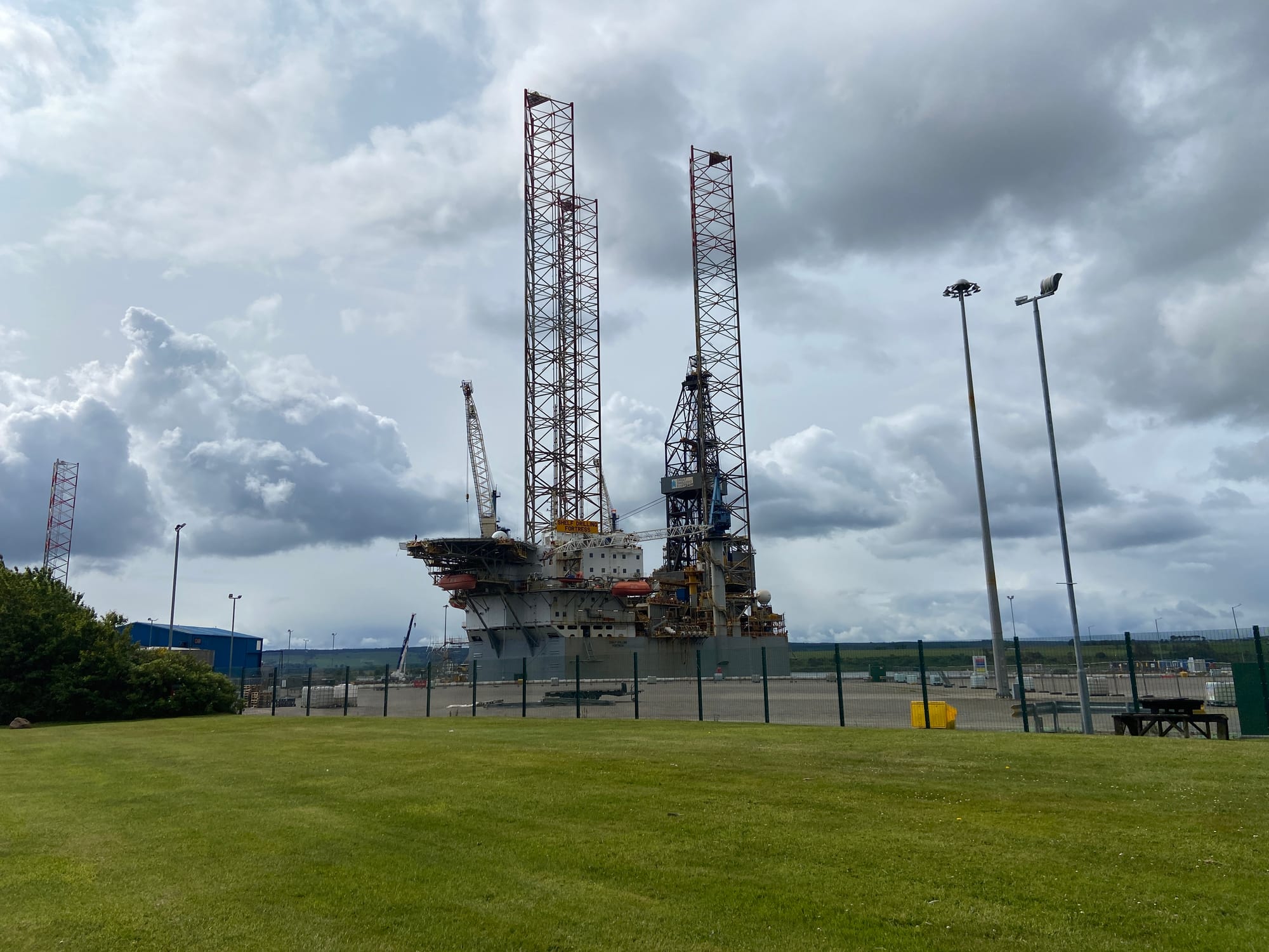 After a hearty breakfast and a quick bit of early morning bike maintenance to fix a puncture on my bike, we finally set off from Invergordon. We left town cycling towards black clouds and a headwind, passing the massive deep-water port with its huge oil platform moored just offshore — a striking reminder of the town’s industrial heart. From there, we followed a quiet road out of town back towards Alness, then continued north as the landscape opened up and the Cromarty Firth fell away behind us.