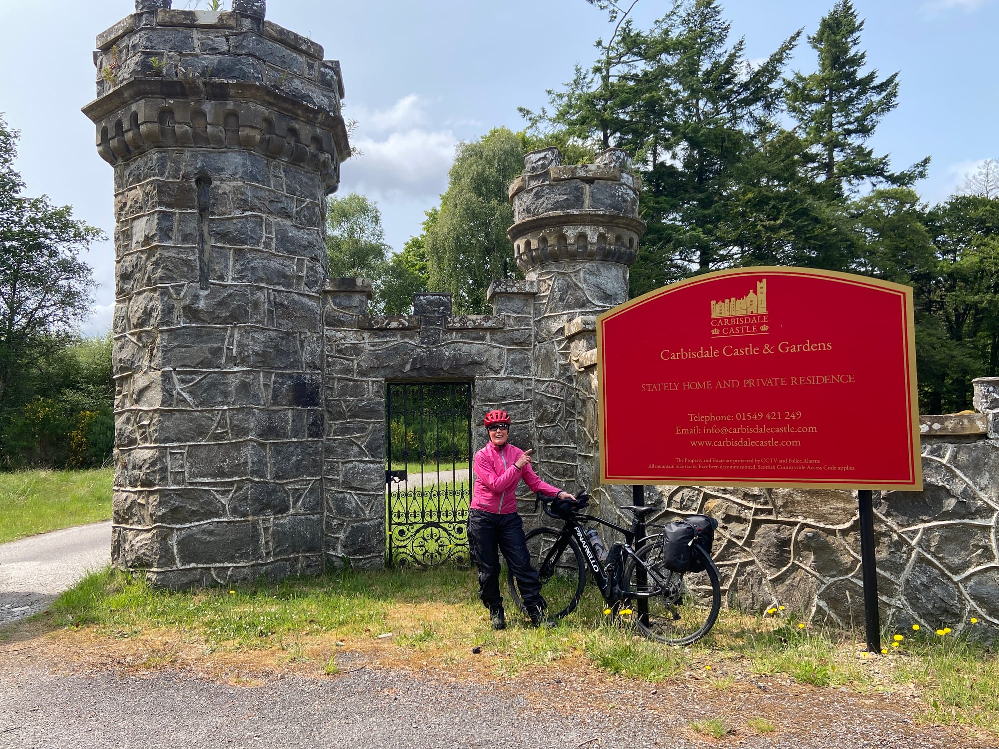 After lunch, we began climbing again, stopping at the entrance to Carbisdale Castle. Liz had spent time there years ago with the Guides during her time as a Guide Leader, so it was a special moment for her to see it again. The castle, once a youth hostel, now stands as a stately home and private residence, its turrets and towers rising above the trees — a striking sight against the Highland backdrop.