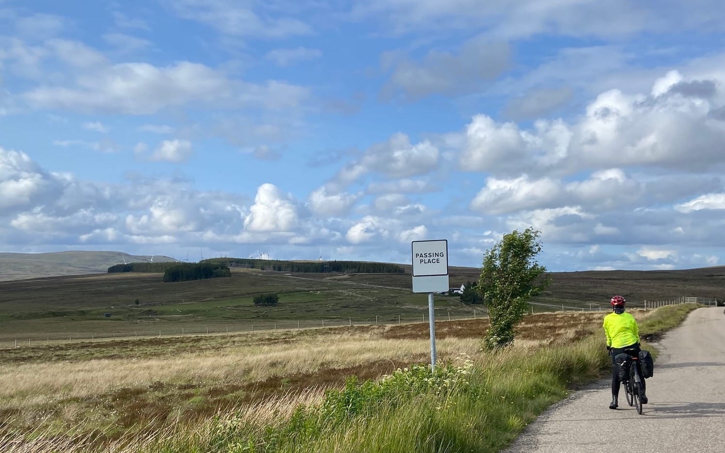 When we finally left Fort Augustus, the road began to climb almost immediately — a long, steady ascent through forest and open moorland towards White Bridge. Partway up, we passed a lone cyclist battling the hill with a fully laden bike, head down and determined. It was a tough climb, but the views opened up beautifully as we gained height, and the quiet of the Highlands made every mile feel worthwhile.