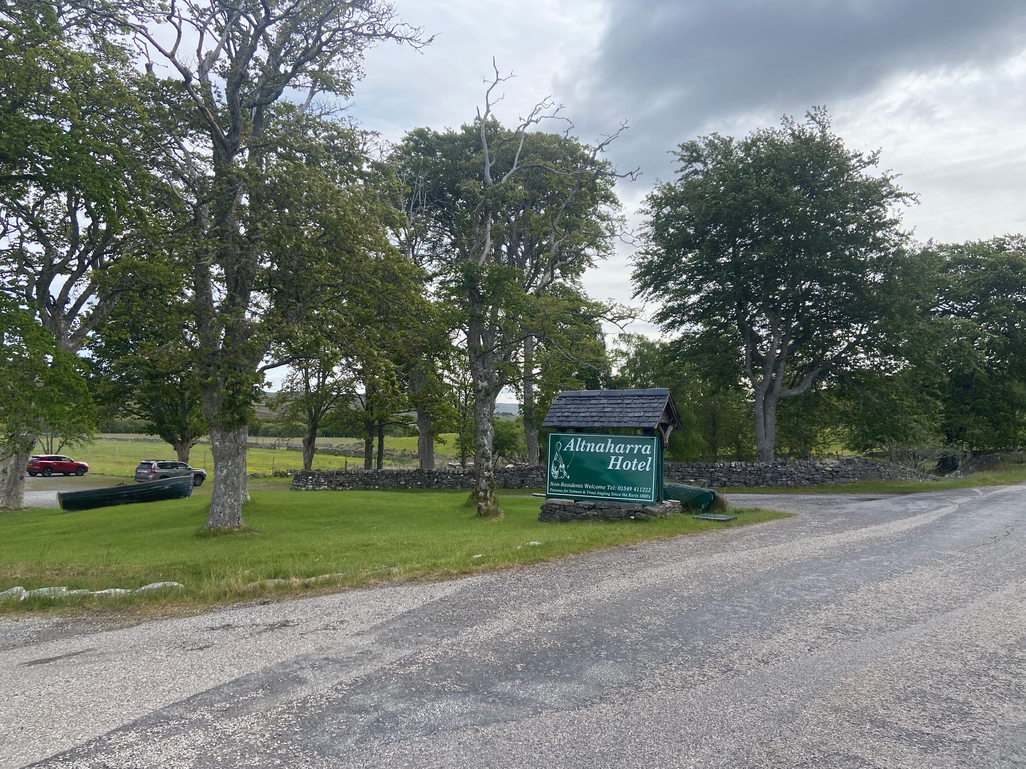 After a long day of cycling, we finally descended into the valley and arrived at the Altnaharra Hotel for the night. This historic drover’s inn, dating back to the 17th century, has been beautifully restored, offering a touch of luxury amid the wild landscape. Renowned for its fishing, the surrounding lochs and rivers added to the sense of calm after a full day on the road. From our room, the moors and distant hills stretched endlessly, a reminder of the vastness of this rugged corner of Scotland. Three days down, just two to go before we reach John O’Groats—tired, certainly, but still loving every minute of the adventure.