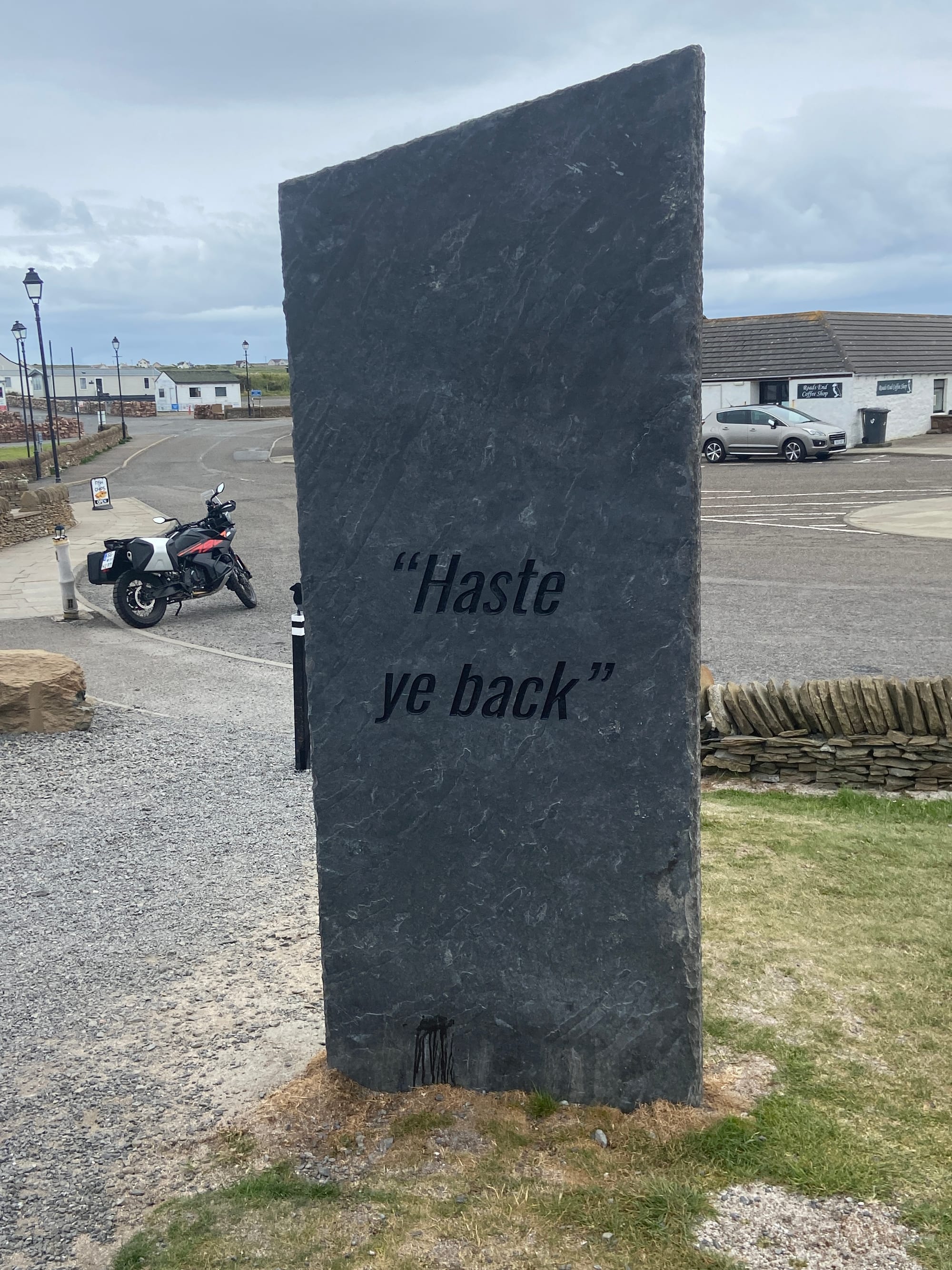 Our next stop was Castletown, a quaint little port where we paused to shelter until a passing shower moved on. Once known for its flagstone industry, the village now has a short heritage trail that tells its story and the part it played in building towns across the world. When the sun returned, we rode on through lanes edged with wildflowers — a fabulous, mostly downhill stretch towards John O'Groats, with the fresh scent of rain still in the air..