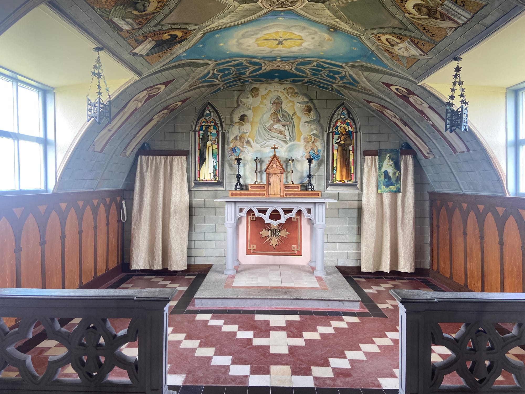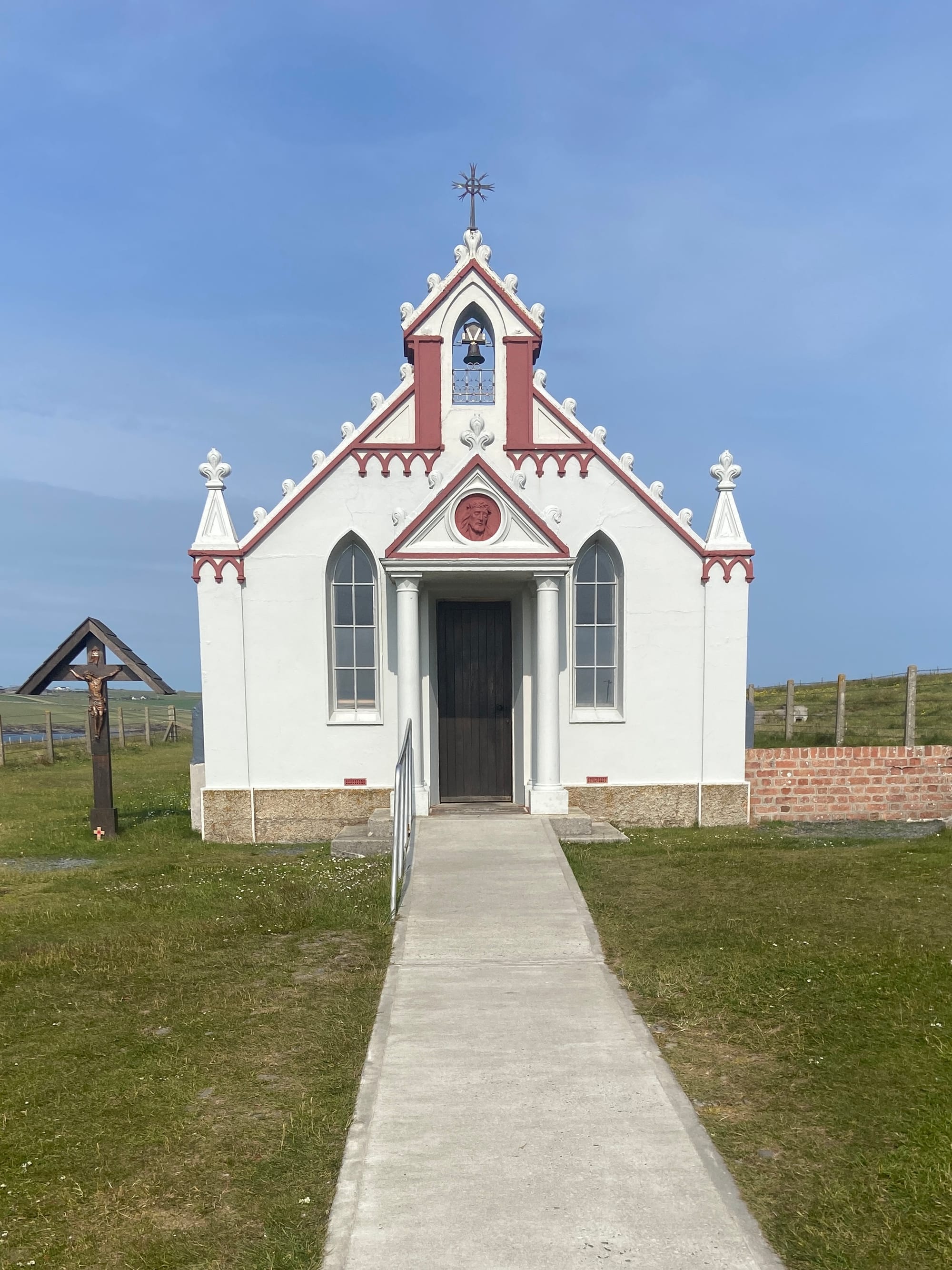 From there, we crossed the Churchill Barriers to our next stop which was the Italian Chapel, a place that never fails to move you. Built by Italian prisoners of war during WWII, it’s a masterpiece of devotion — two humble Nissen huts transformed into a space of extraordinary beauty and peace.
