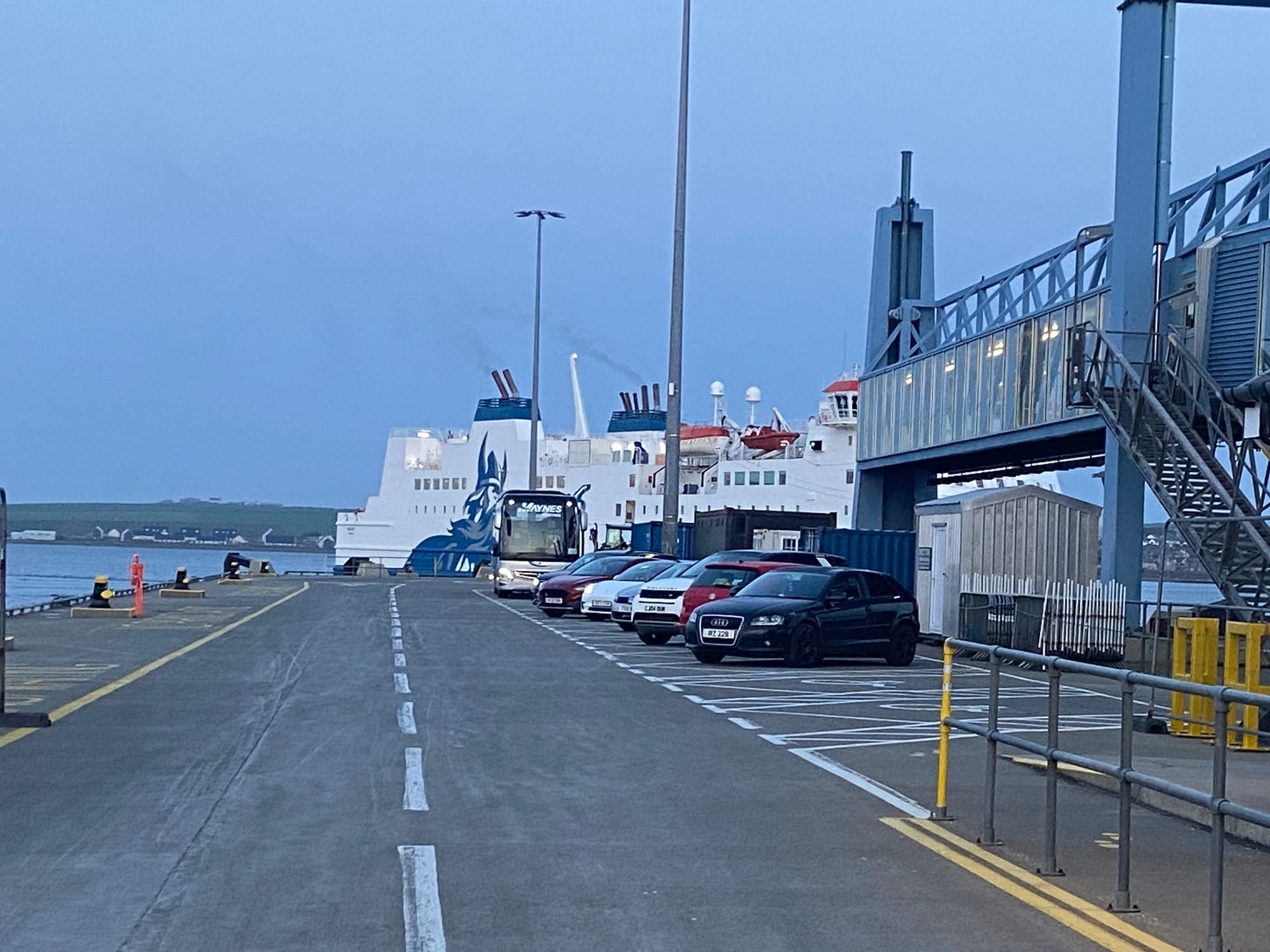 After dinner, we cycled to the port to catch the overnight ferry to Aberdeen. Thankfully, we’d left in good time — just as well, as we discovered there were two ports, and the correct one was a couple of miles further out of Kirkwall.