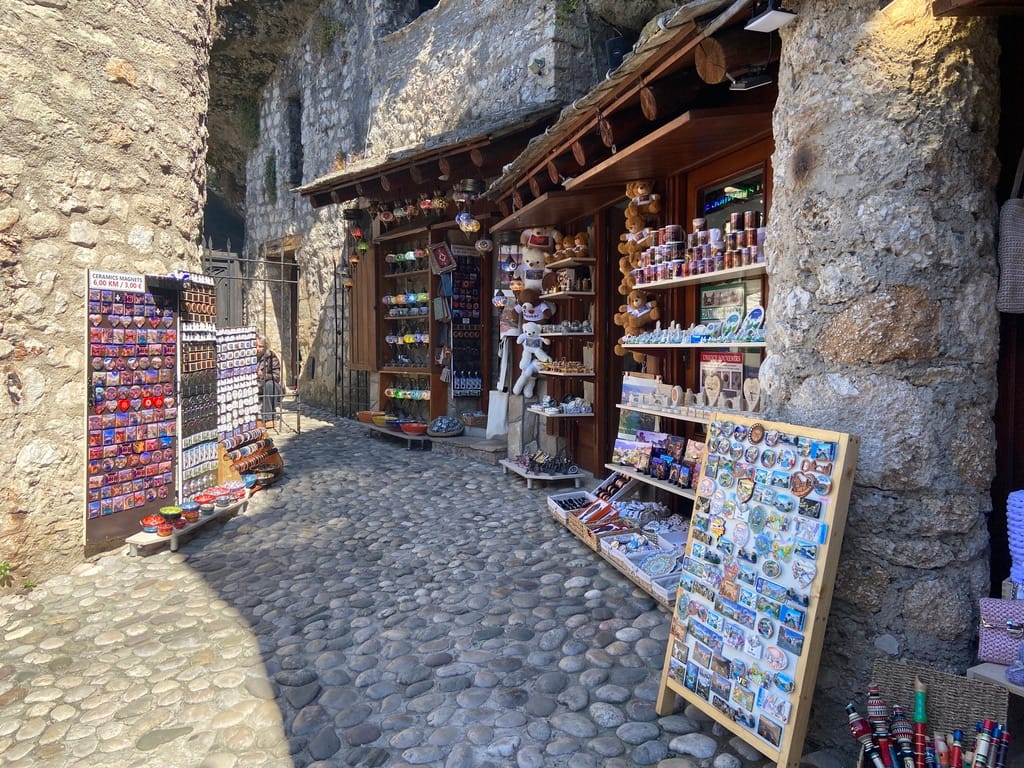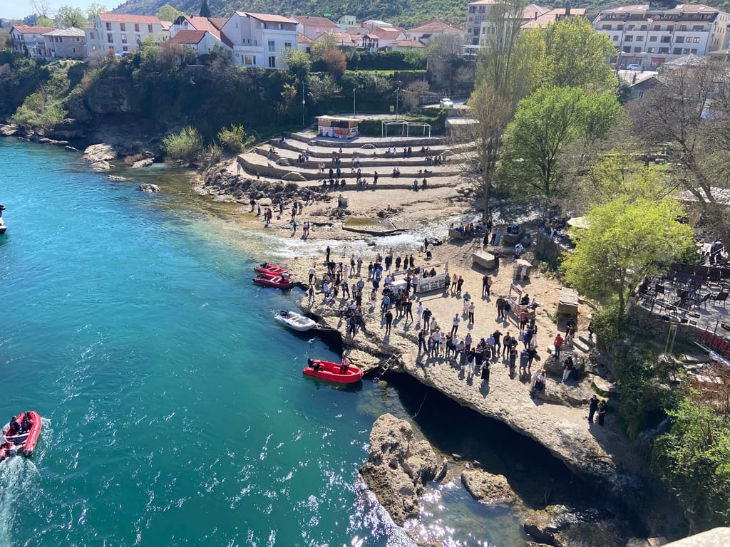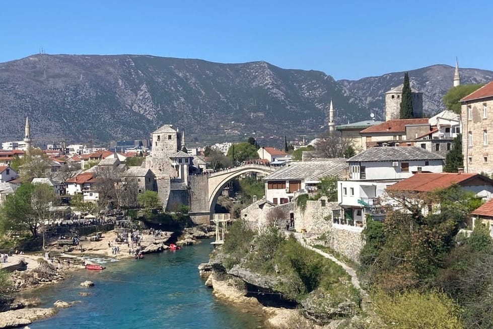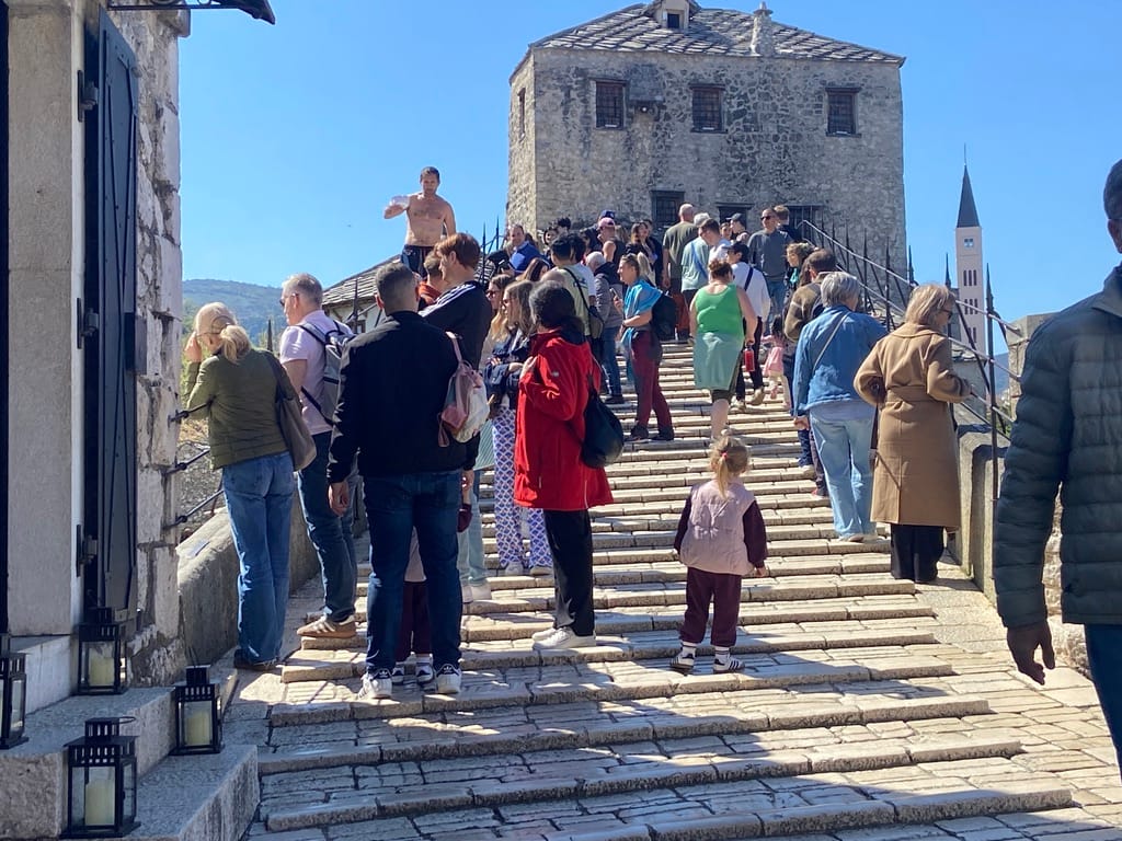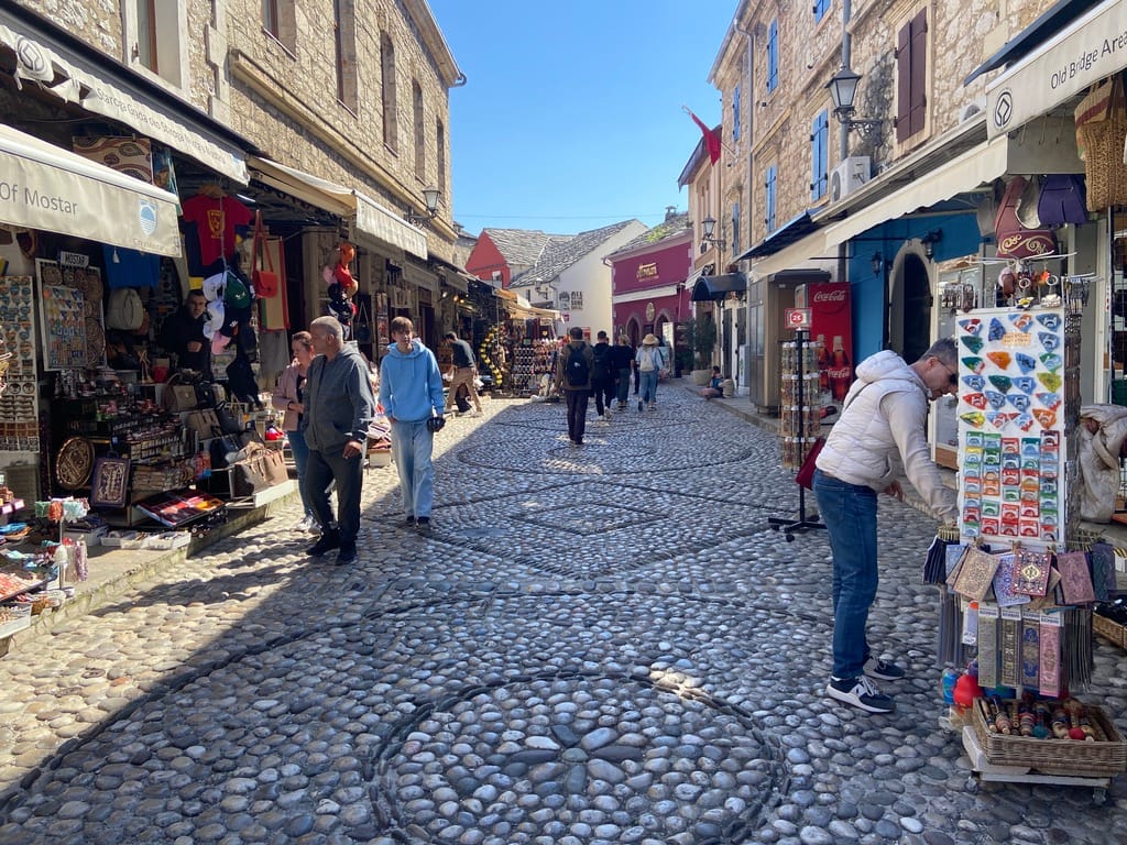 We crossed over a bridge as we arrived in Mostar — a great first view of the old bridge, and it really was stunning. The famous Stari Most, rebuilt after the war, sits right at the heart of the old town and draws people in from all over.