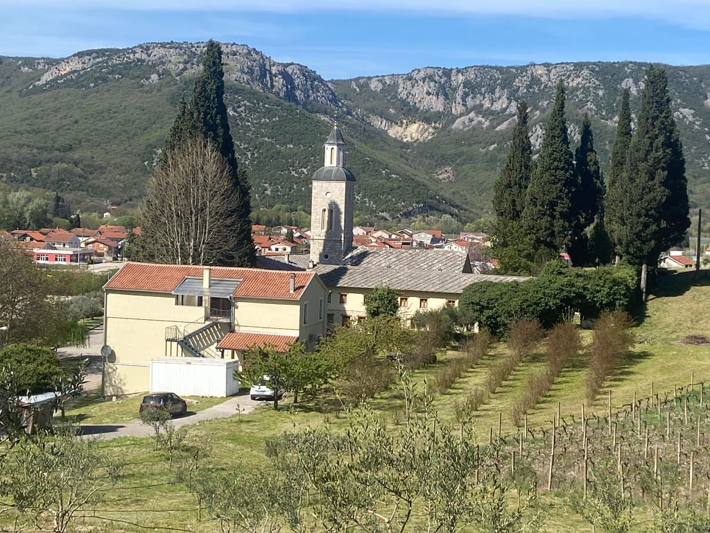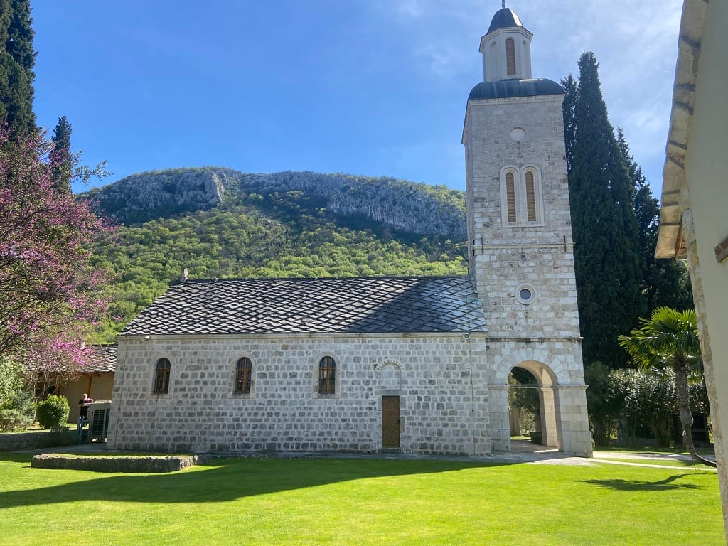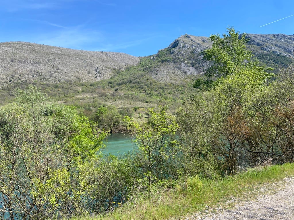 We cycled up along the river and came across Žitomislić Monastery almost by chance. Our route carried on past it, but the road soon turned into a rough track and we had to turn back. In the end, that worked in our favour. We stopped at the monastery instead, and it felt like a real find — a calm oasis tucked just off the main road to Mostar. Quiet, peaceful, and completely unexpected.