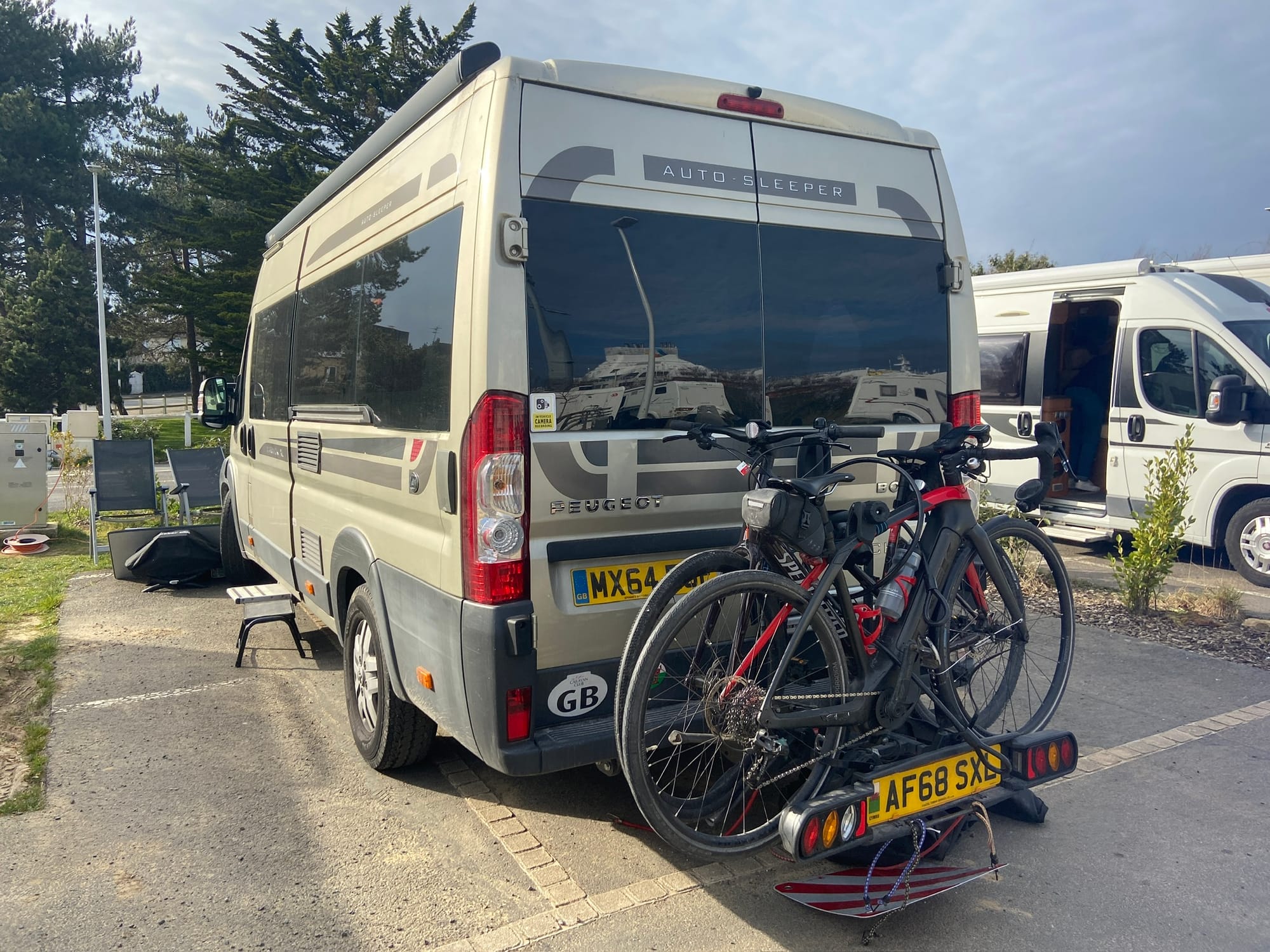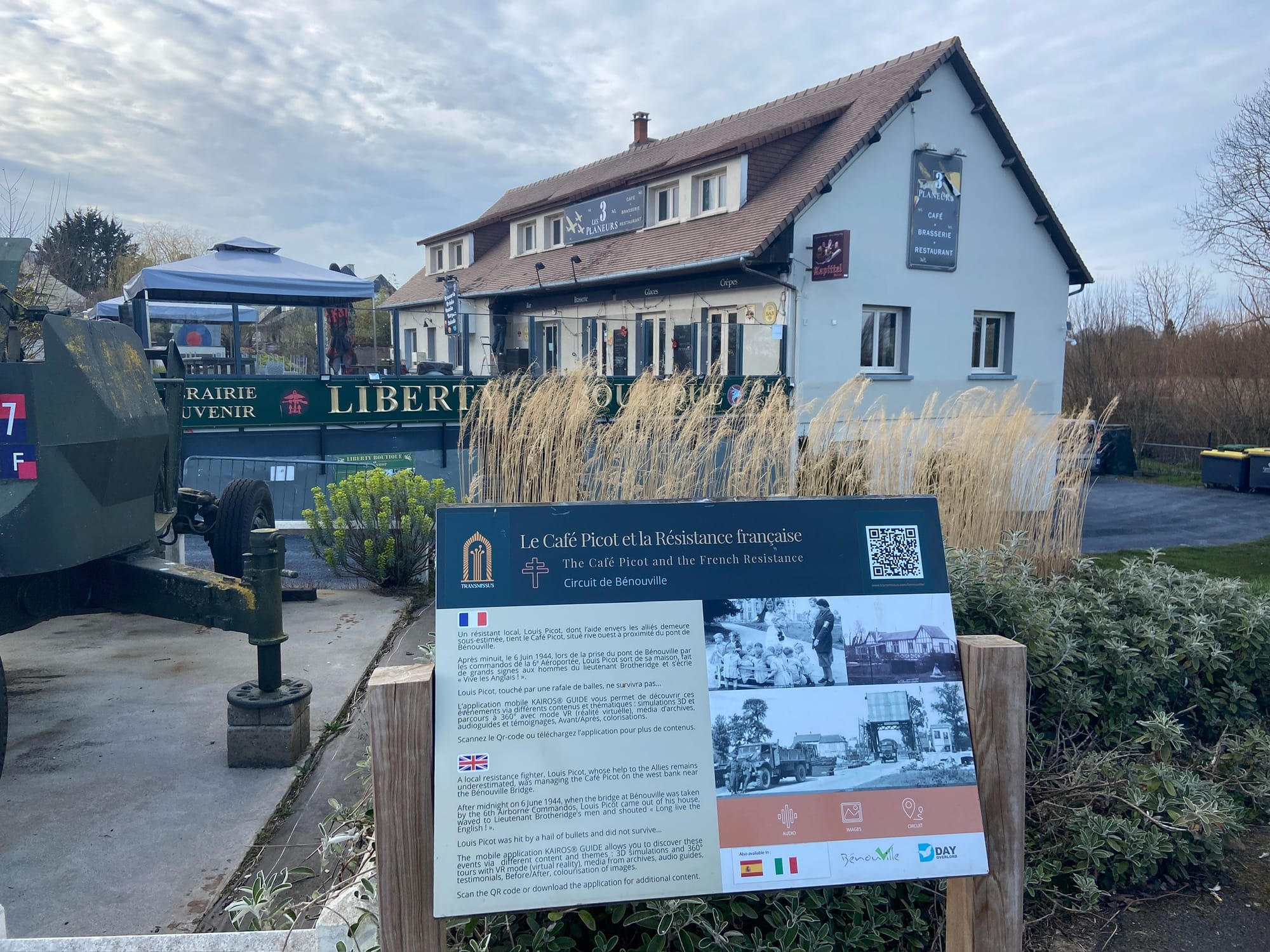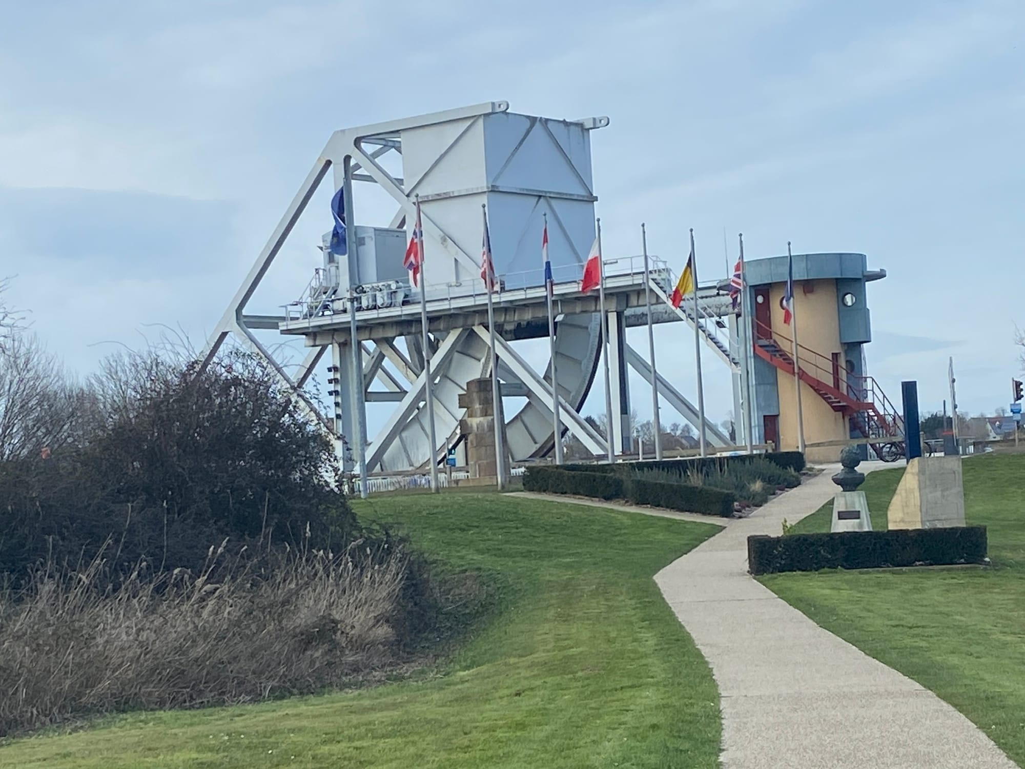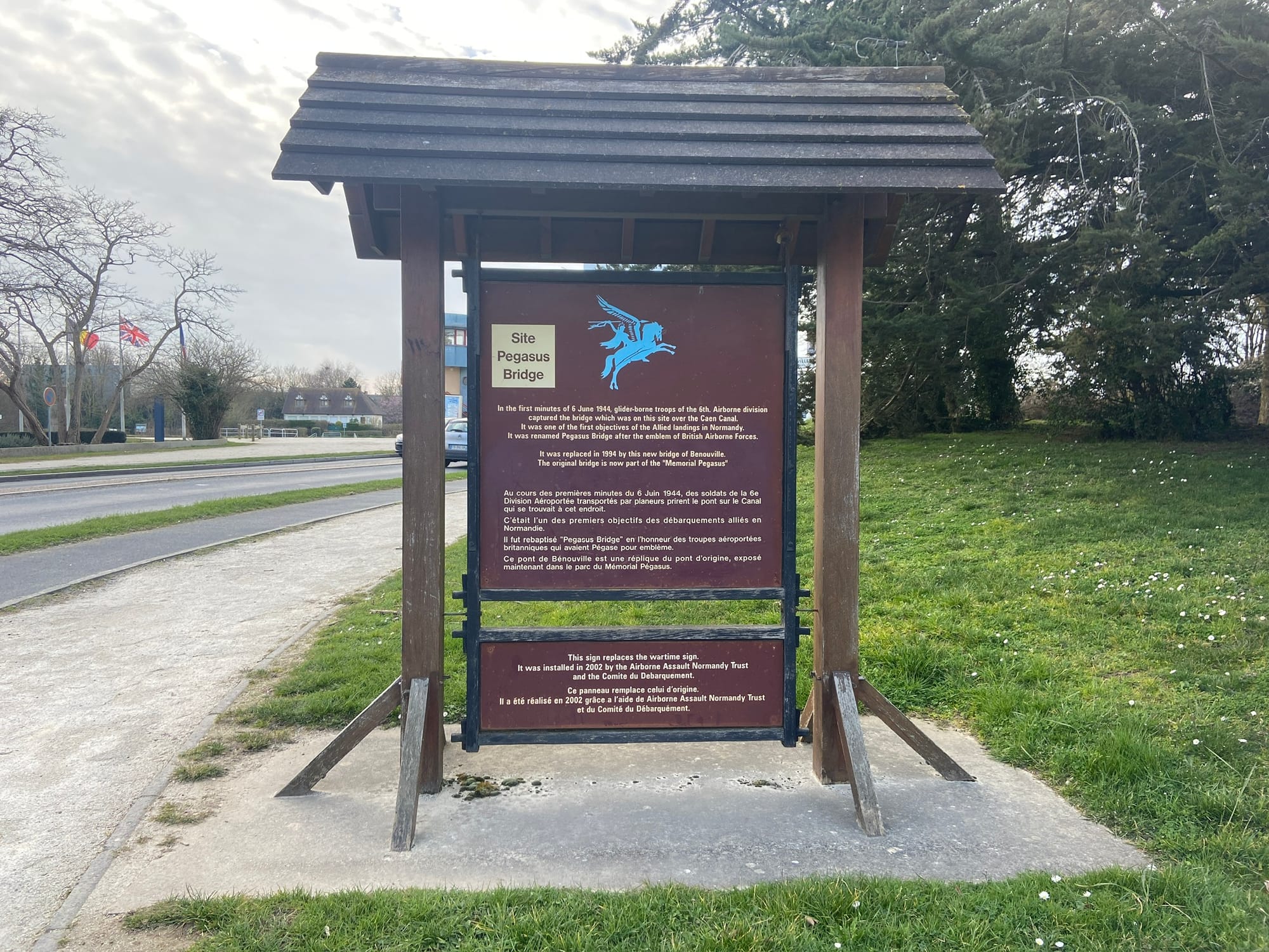 We’ve parked up at a Camping Car Park that’s brilliantly placed — so close to the ferry port it feels like we’ve already done tomorrow’s job. Once we were settled, we got the bikes off and followed the cycle path down to Pegasus Bridge. It’s a powerful place, with memorials that really make you stop and think about what those soldiers did to secure this crossing.