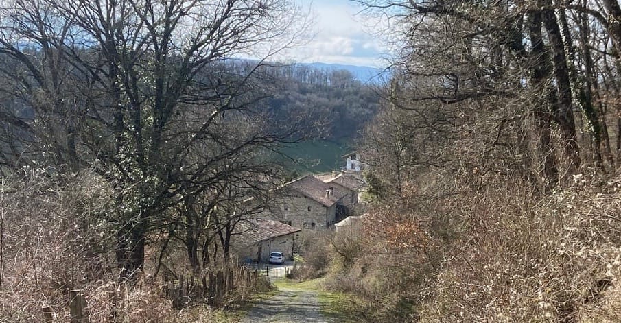 We took a gravel track up through olive groves — miles and miles of silvery trees, absolutely beautiful — and ended up in a little hill town of cobbled streets and character.