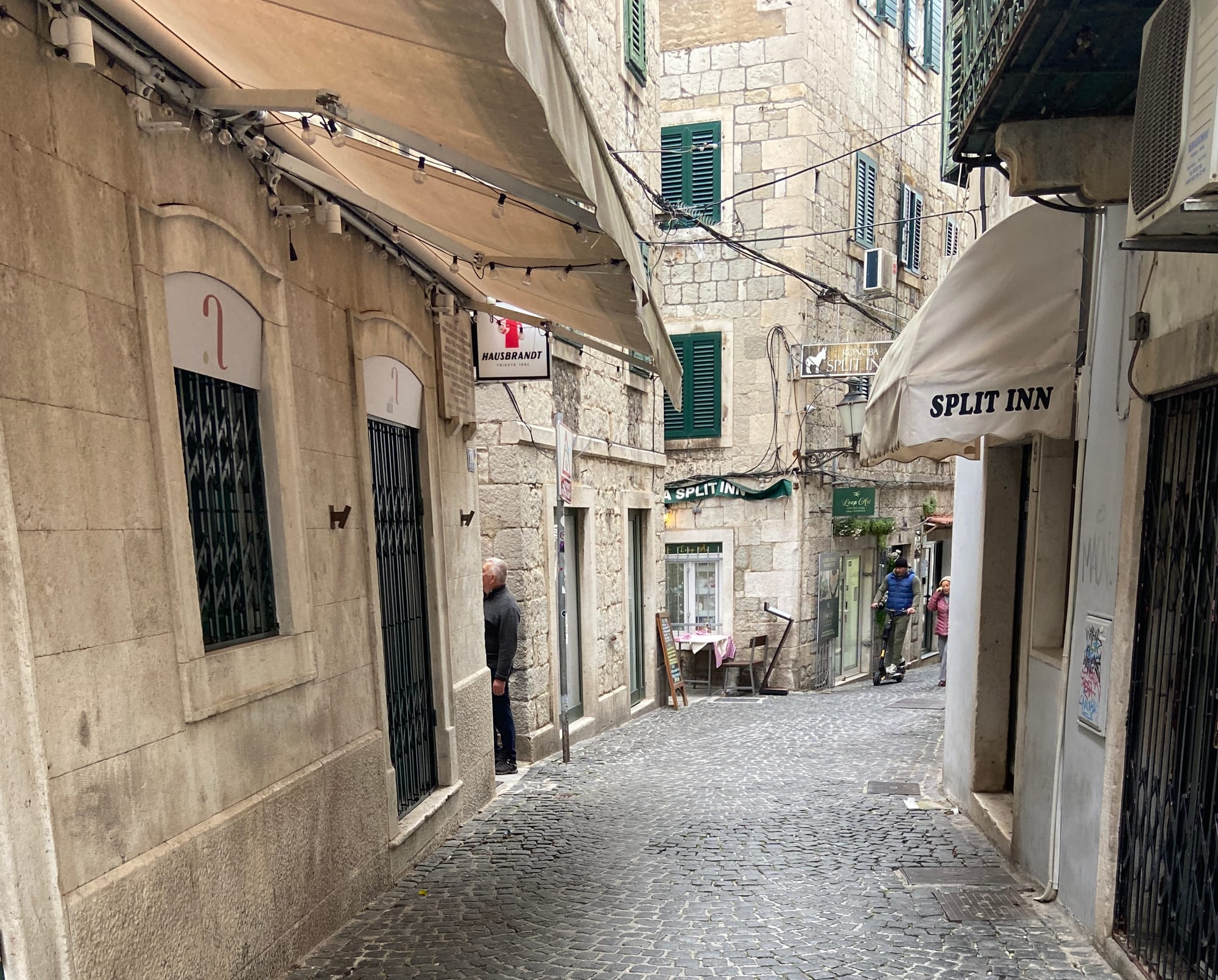 It feels a little hemmed in, with no real view, but cosy too — just a short bus ride into Split, where we wandered through the old town and stopped for a coffee, watching the world go by.