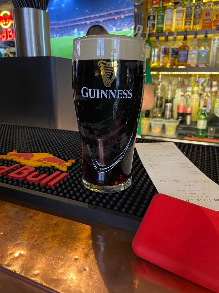 An Irish pub spotted earlier seemed too good to miss — a well-earned Guinness.