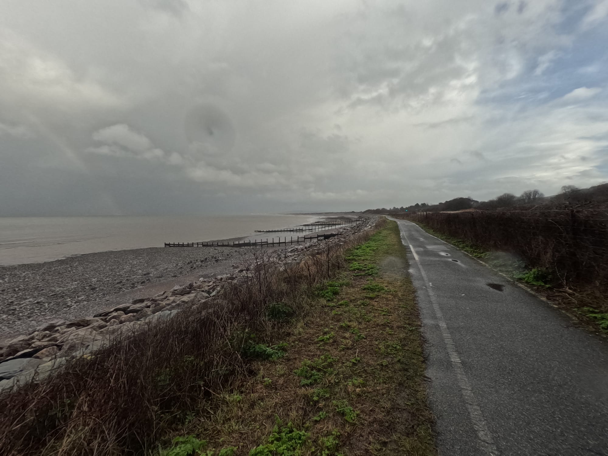 Back along the coast, hints of blue sky at last. The sun appeared halfway back, enough to brighten the ride home โ๏ธ