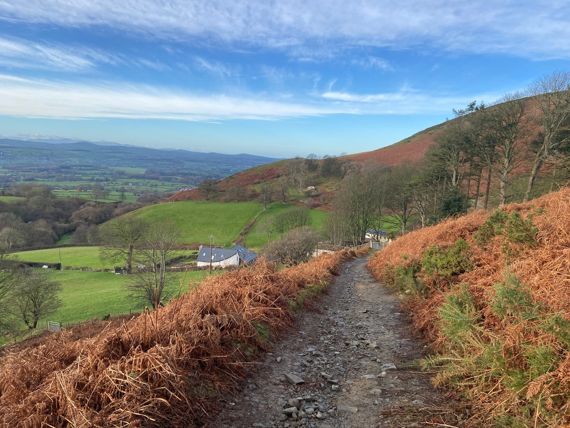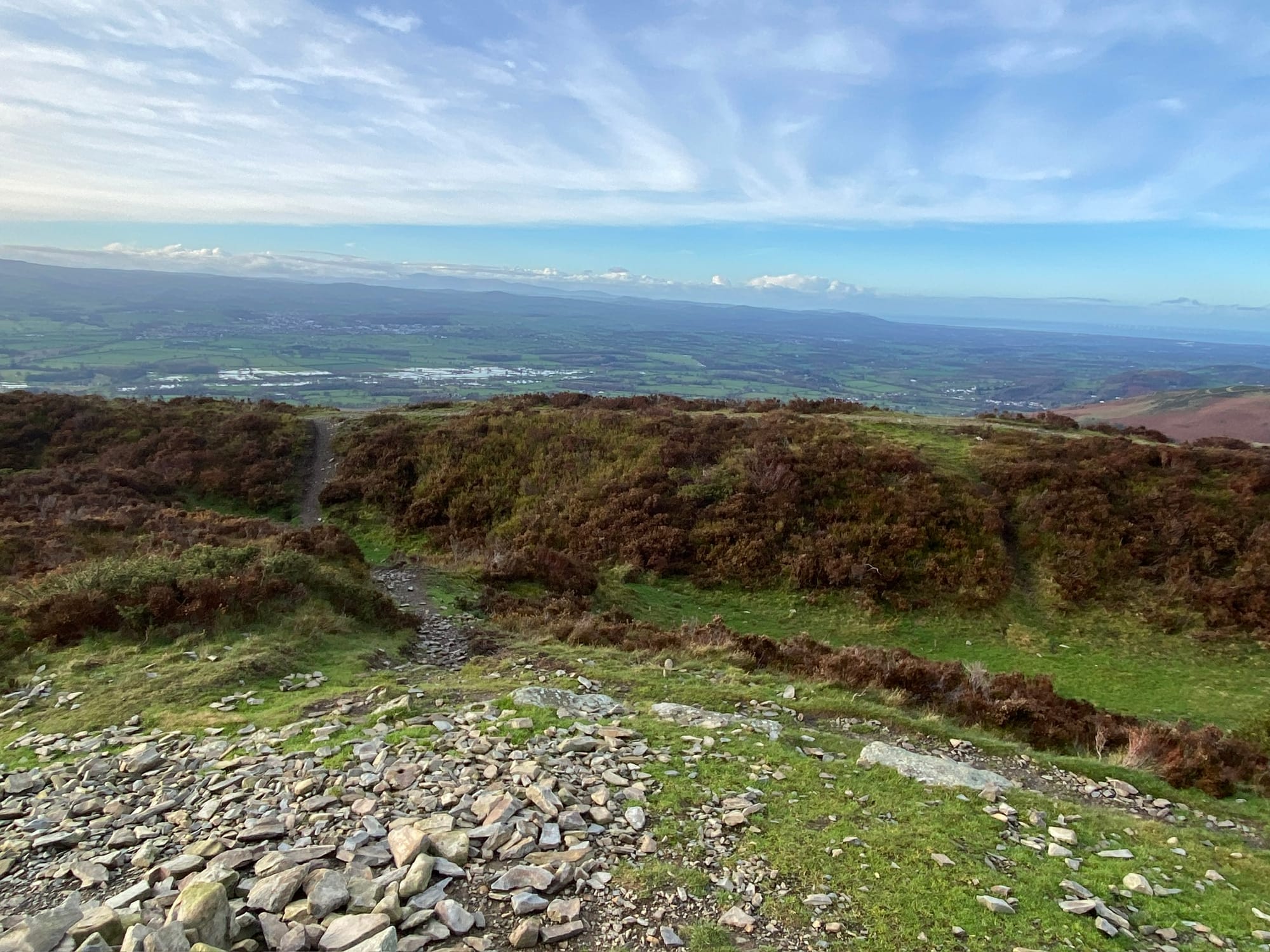A straightforward out-and-back walk from Bodfari to the summit of Penycloddia on the Offa’s Dyke Path. A steady, sometimes demanding climb on a very well-marked route, rewarded with expansive ridge views.